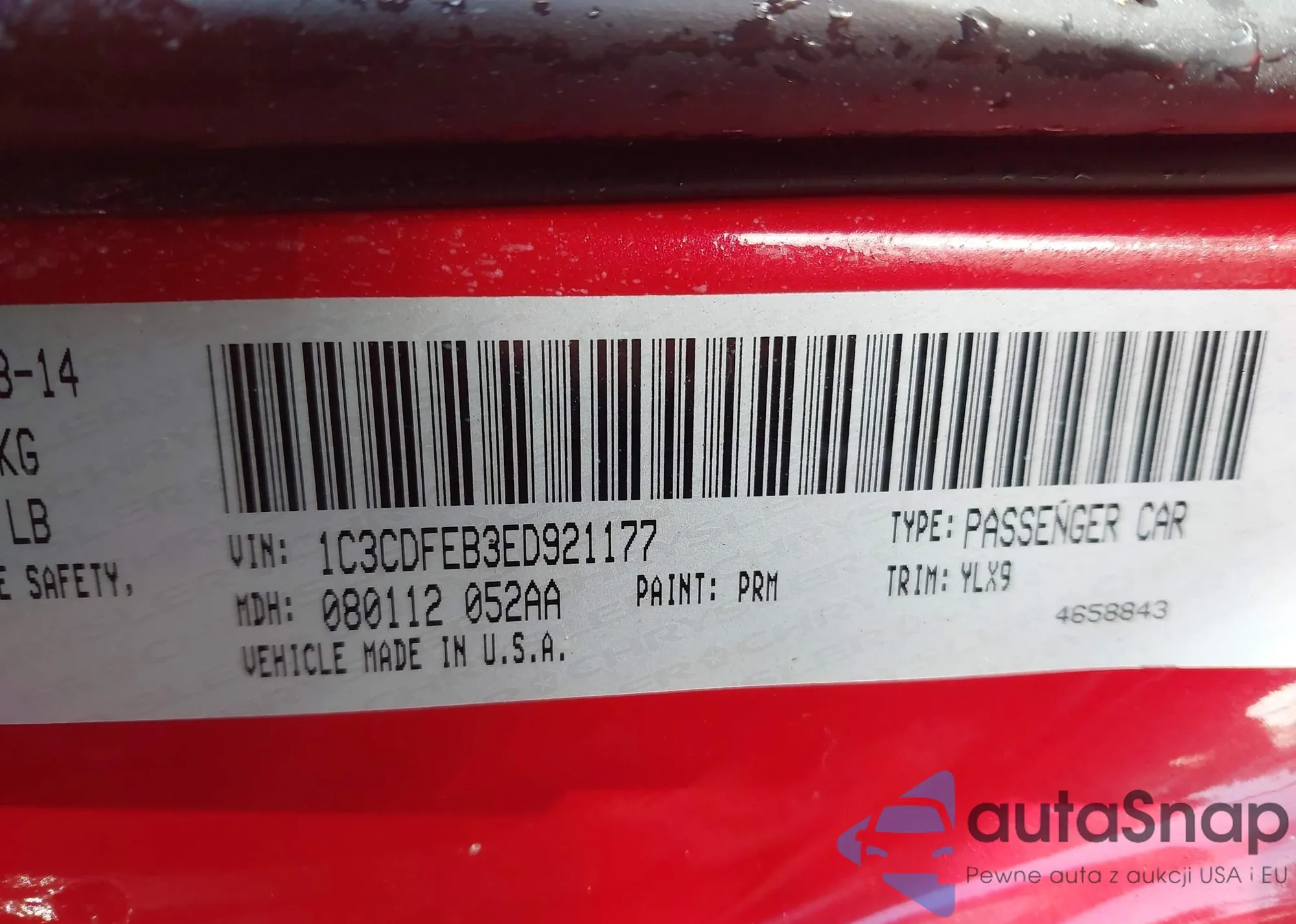 • VIN 1C3CDFEB3ED921177