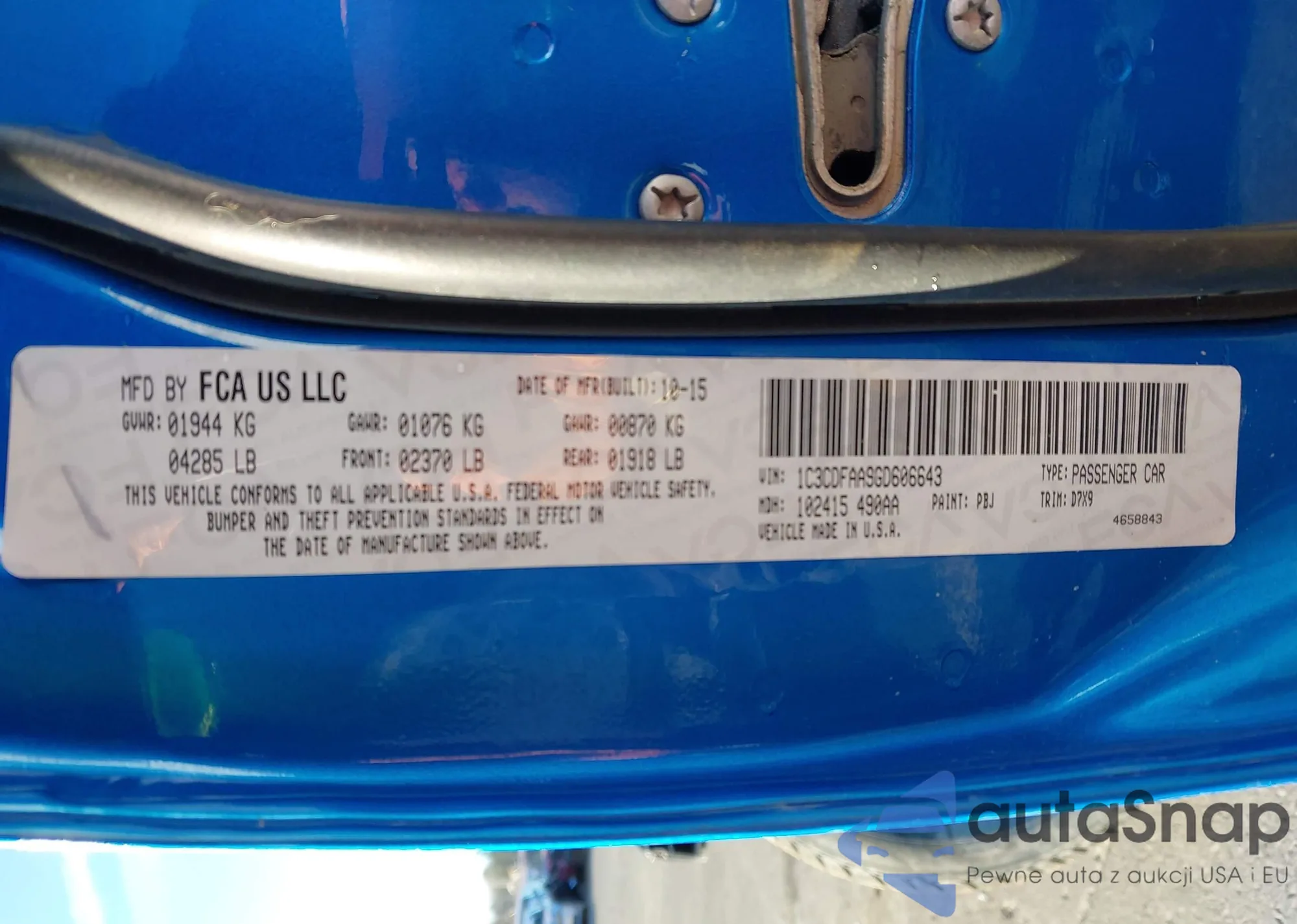 • VIN 1C3CDFAA9GD606643