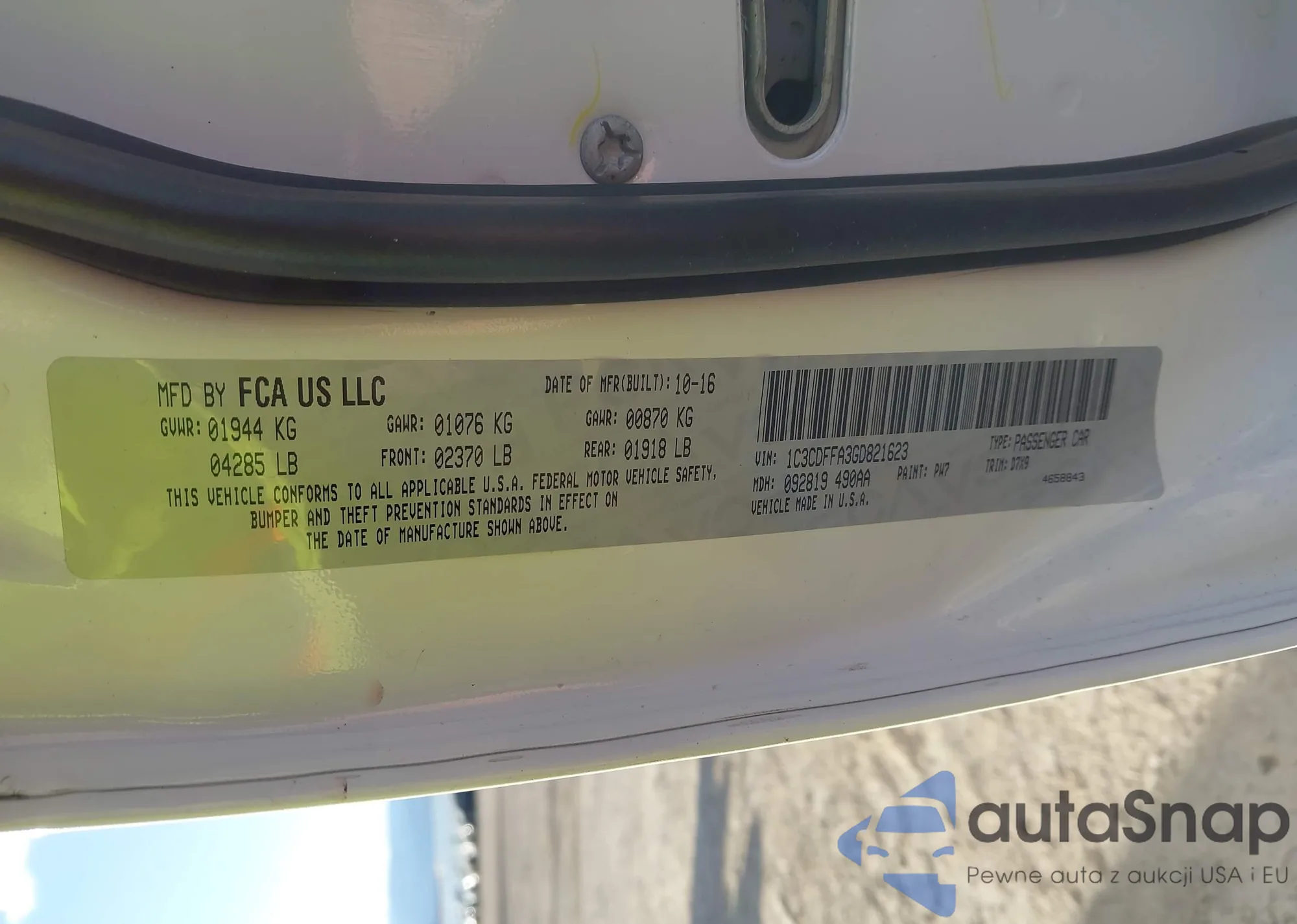 LOT: 44201838 VIN: 1C3CDFAA9GD606643