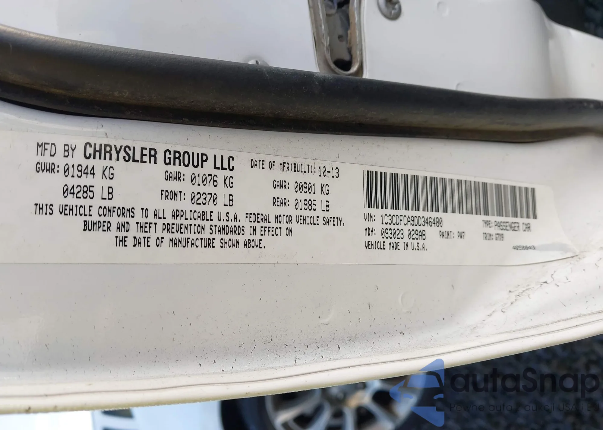 LOT: 44287292 VIN: 1C3CDFCA9DD346480