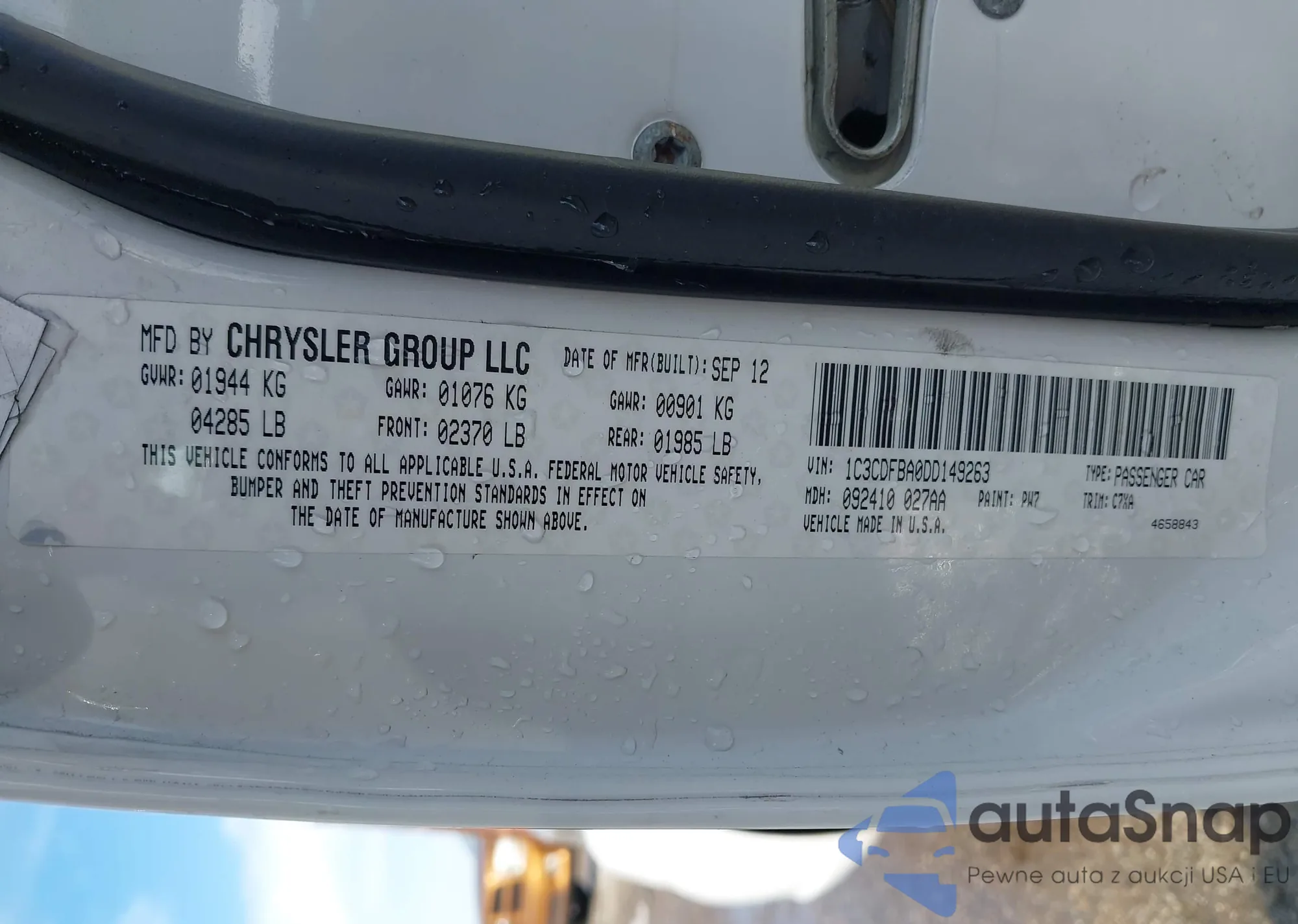 • VIN 1C3CDFBA0DD149263