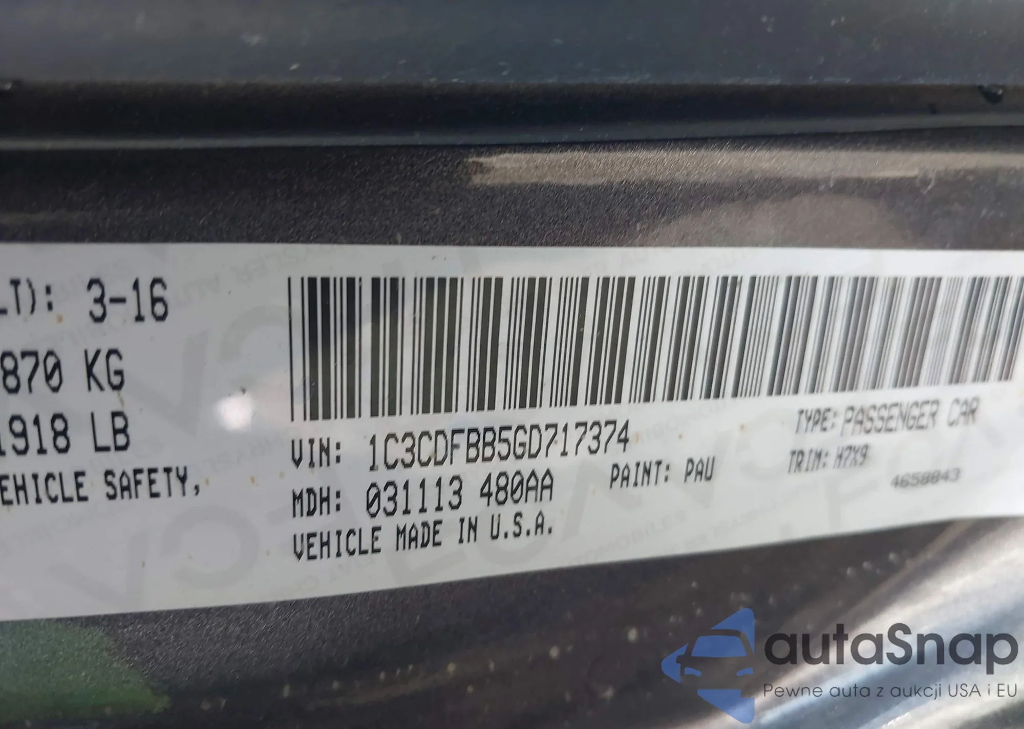 • VIN 1C3CDFBB5GD717374
