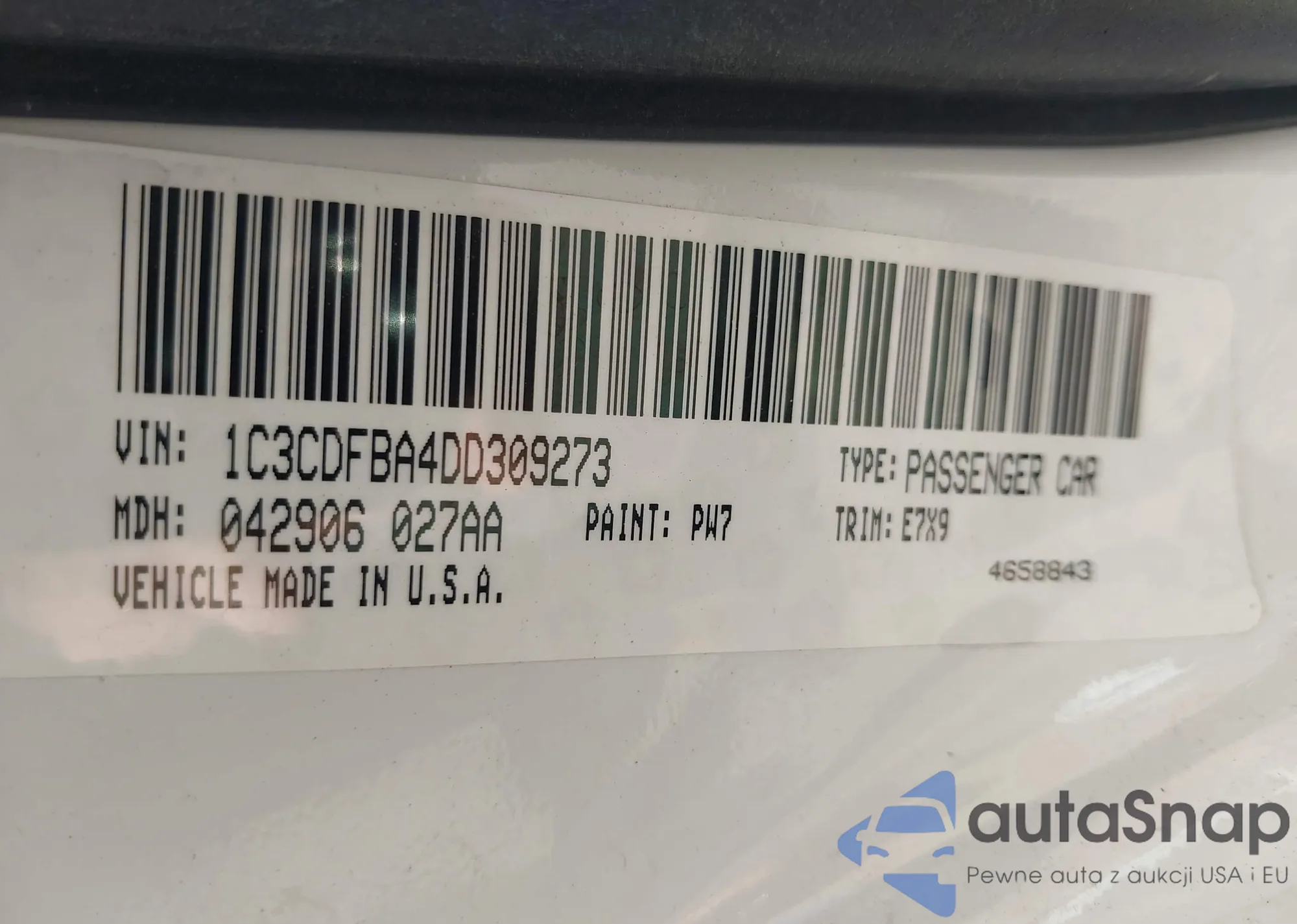 LOT: 44295282 VIN: 1C3CDFBA4DD309273