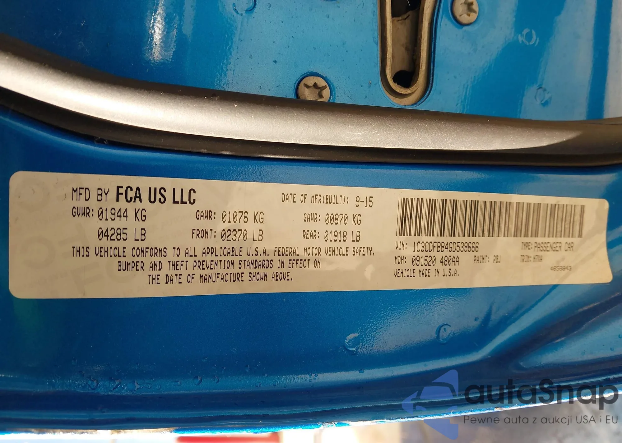 • VIN 1C3CDFAA9GD736714