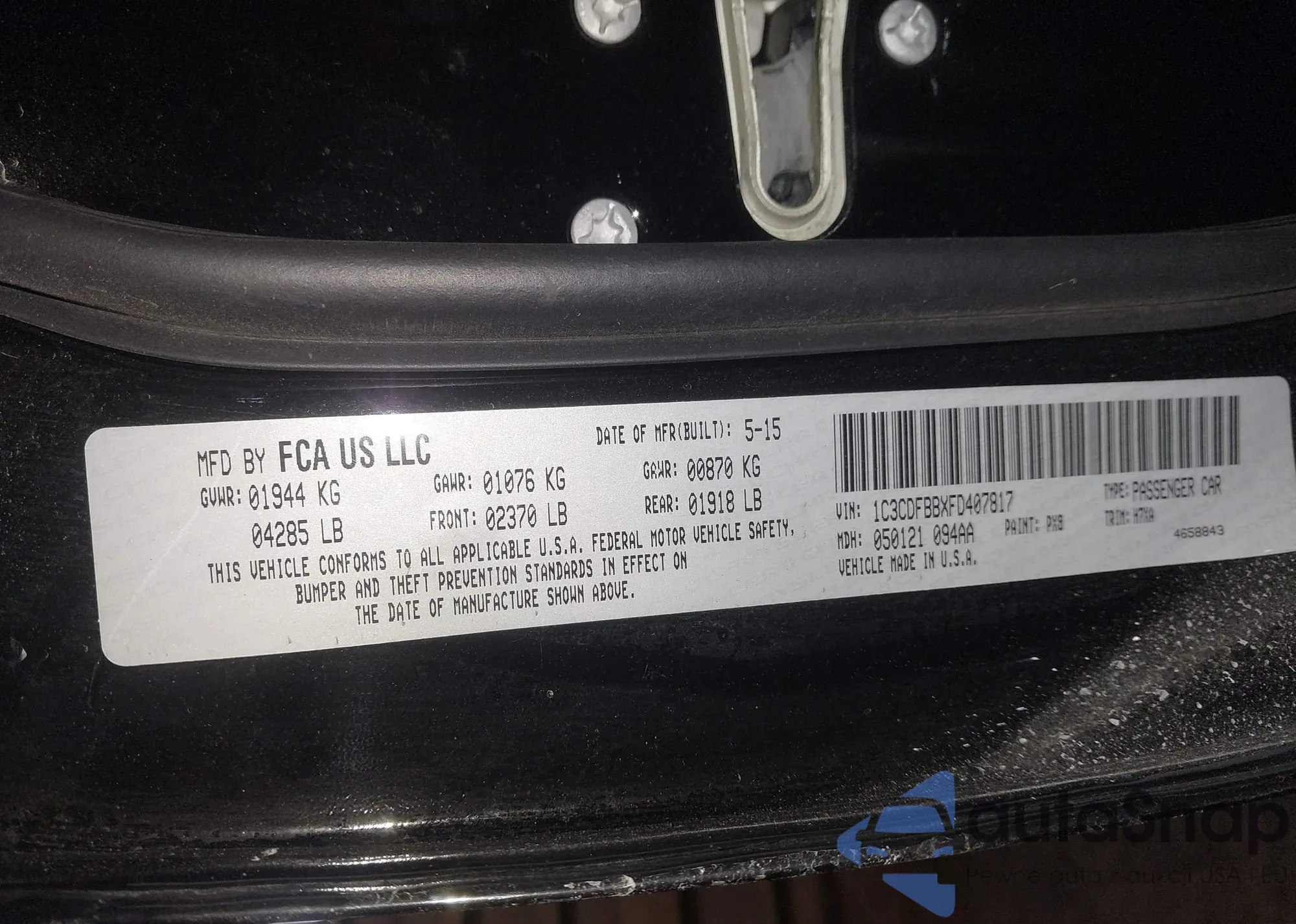 • VIN 1C3CDFBBXFD407817