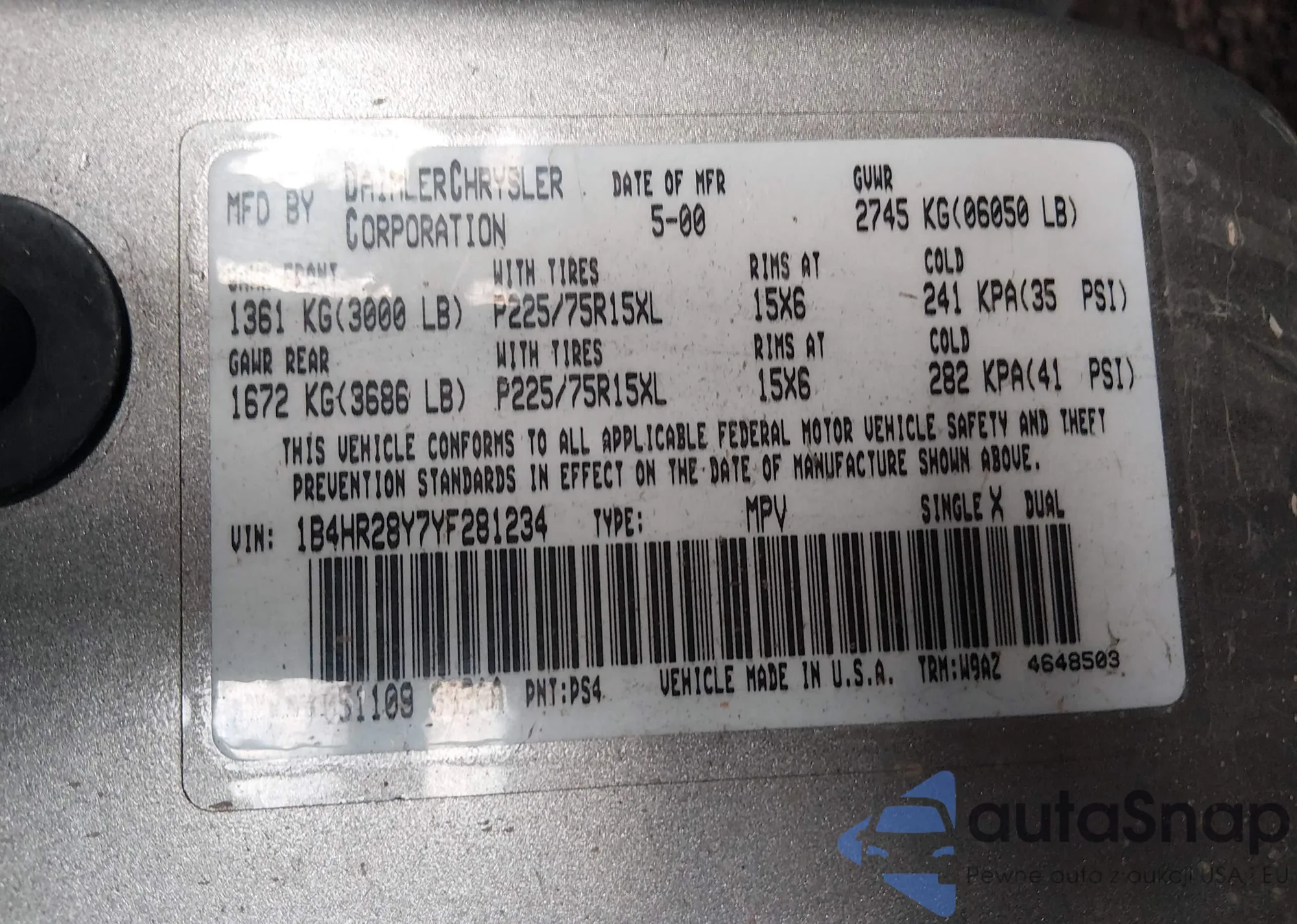 • VIN 1B4HR28Y7YF281234