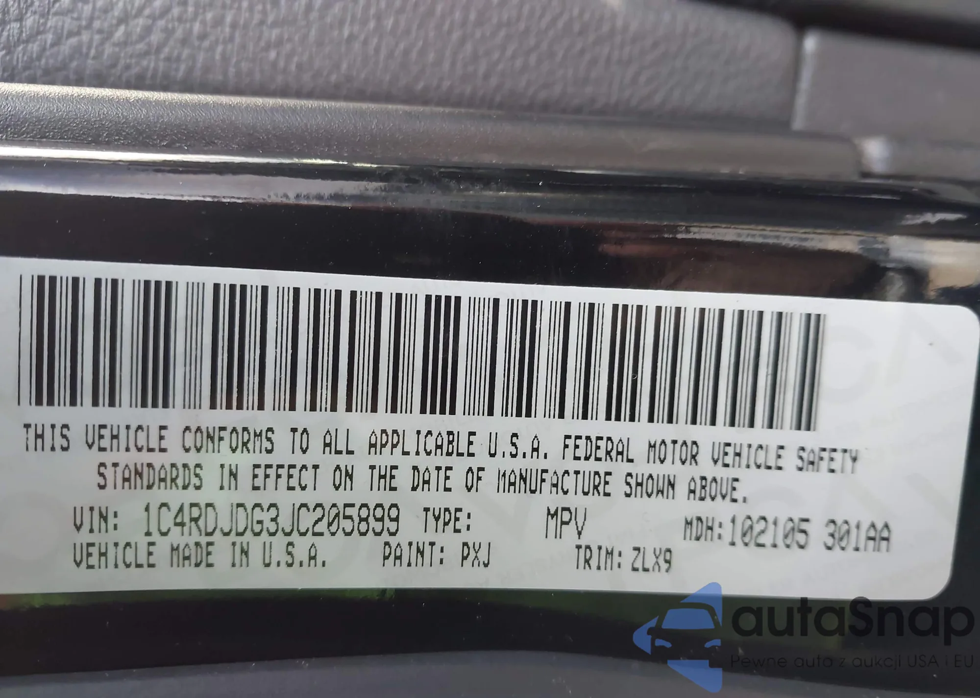 • VIN 1C4RDJDG3JC205899