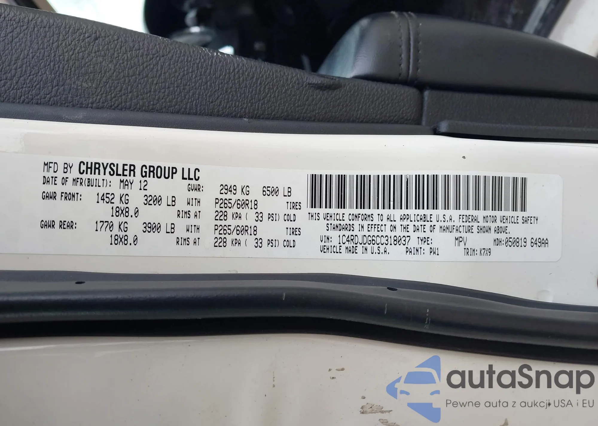 • VIN 1C4RDJDG6CC318037