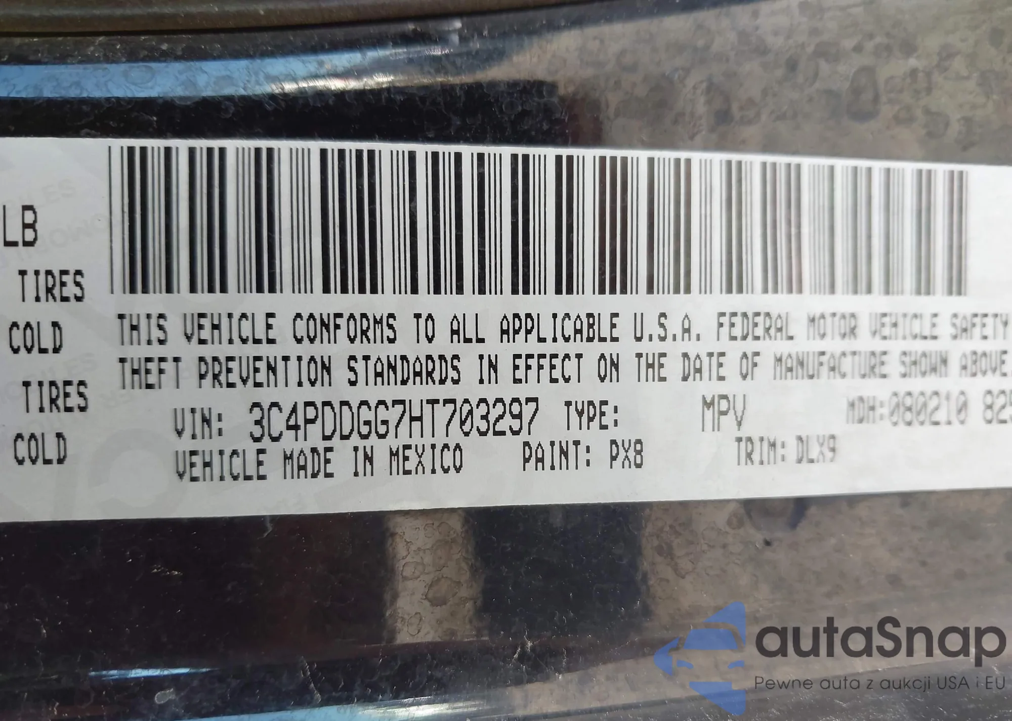 • VIN 3C4PDDGG7HT703297