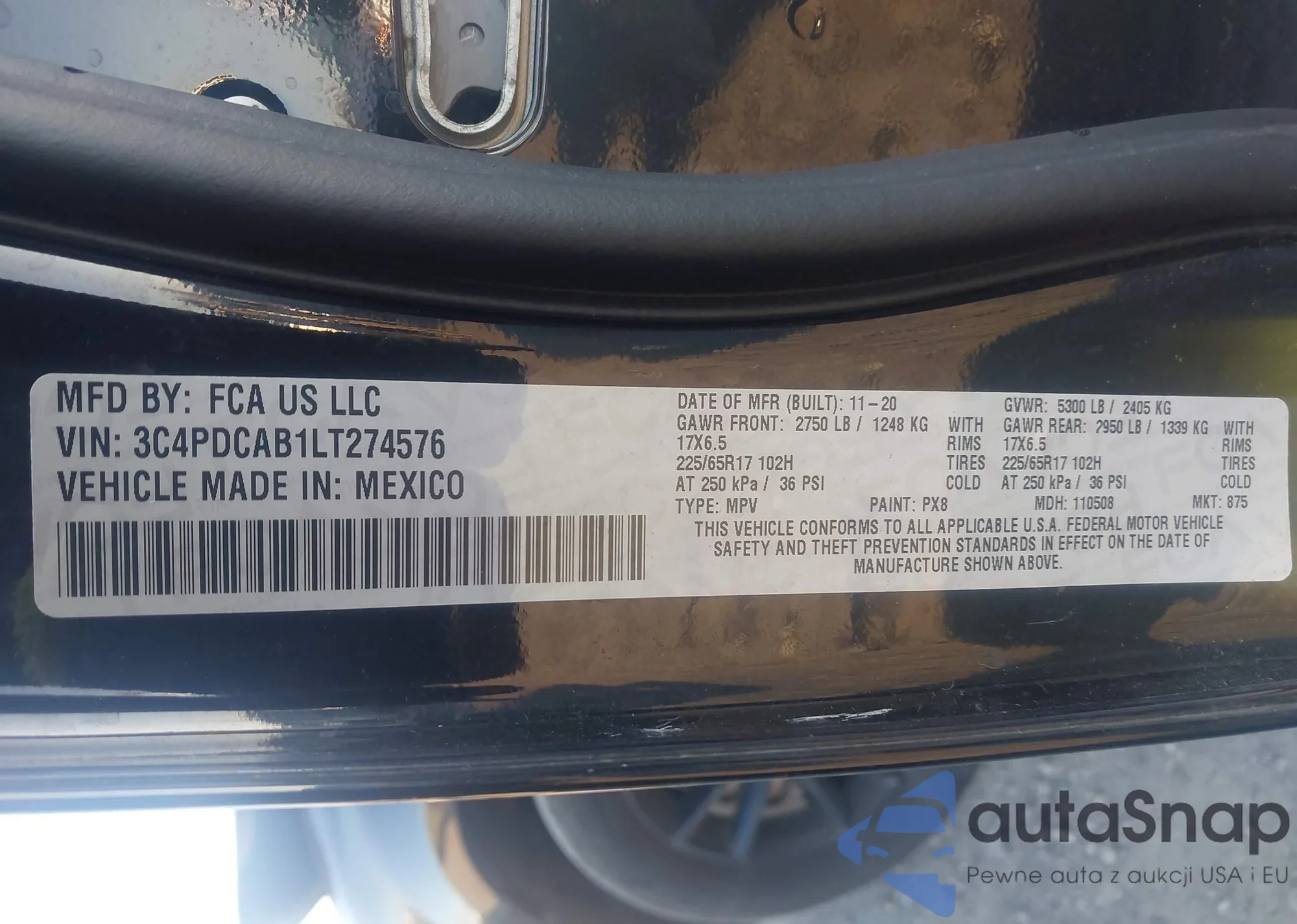 • VIN 3C4PDCAB1LT274576