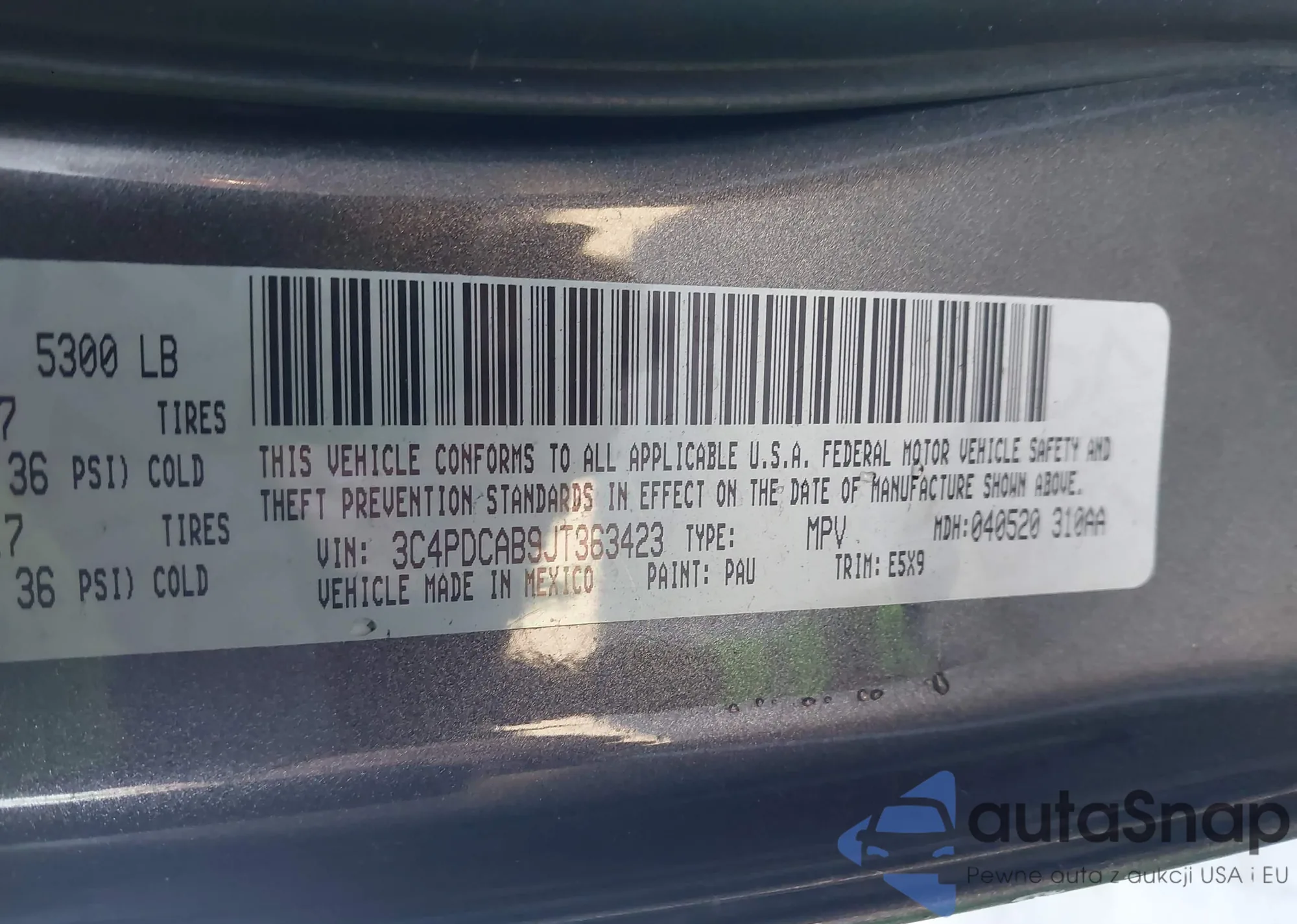 • VIN 3C4PDCAB9JT363423