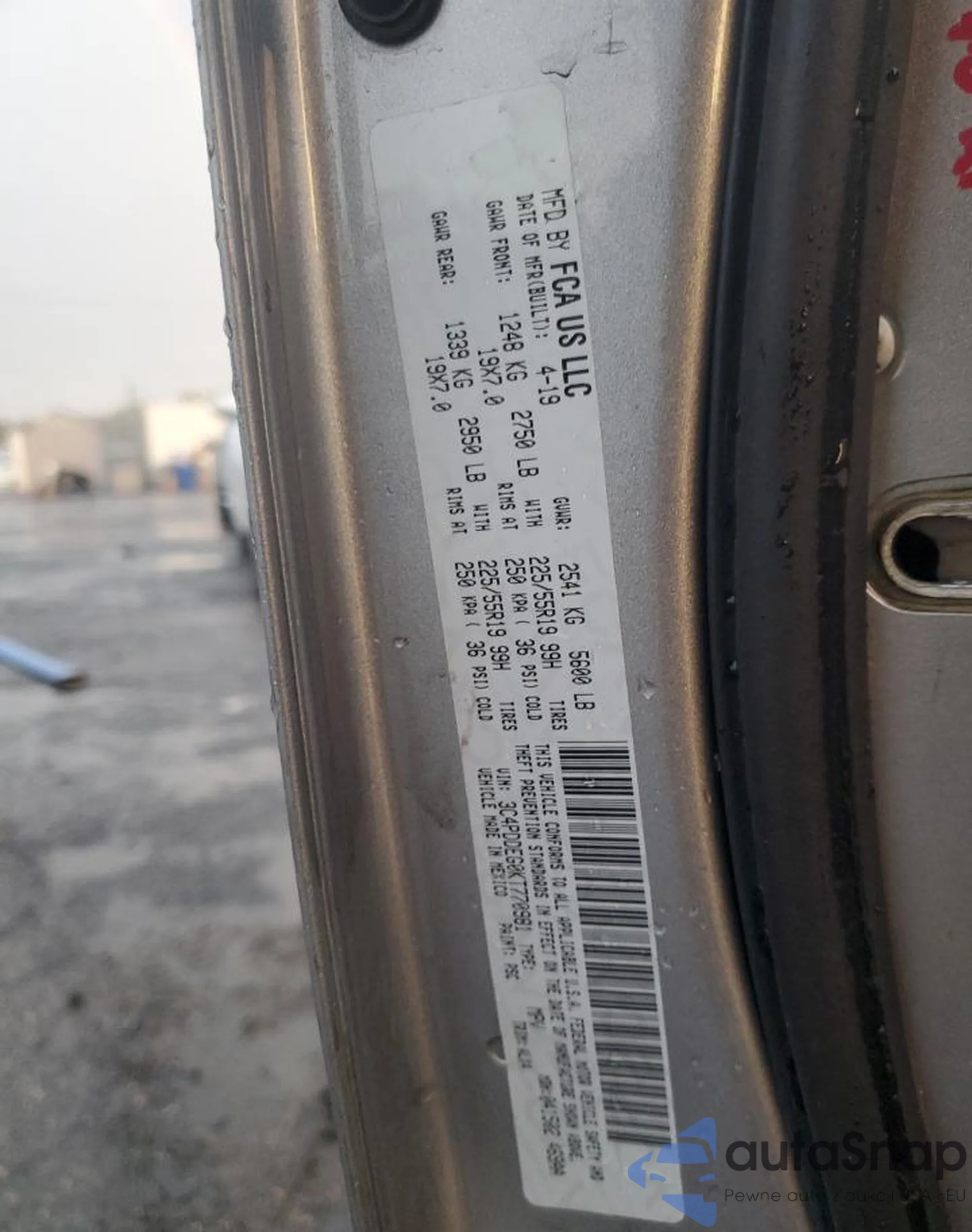 LOT: 43661502 VIN: 3C4PDCBBXKT874784