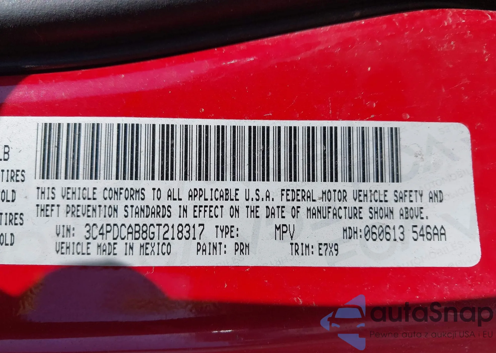 • VIN 3C4PDCAB8GT218317