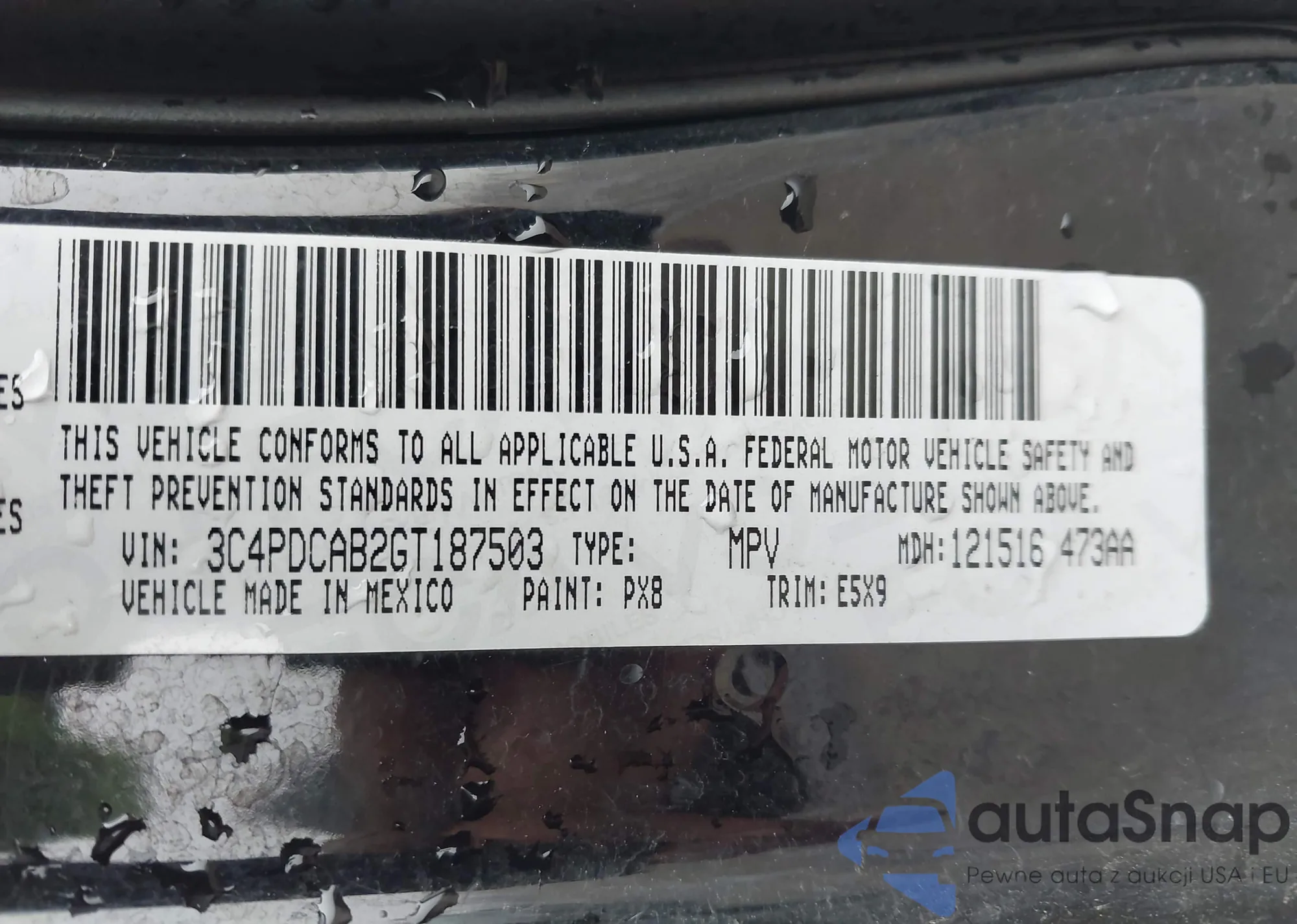 LOT: 44163265 VIN: 3C4PDCAB2GT187503