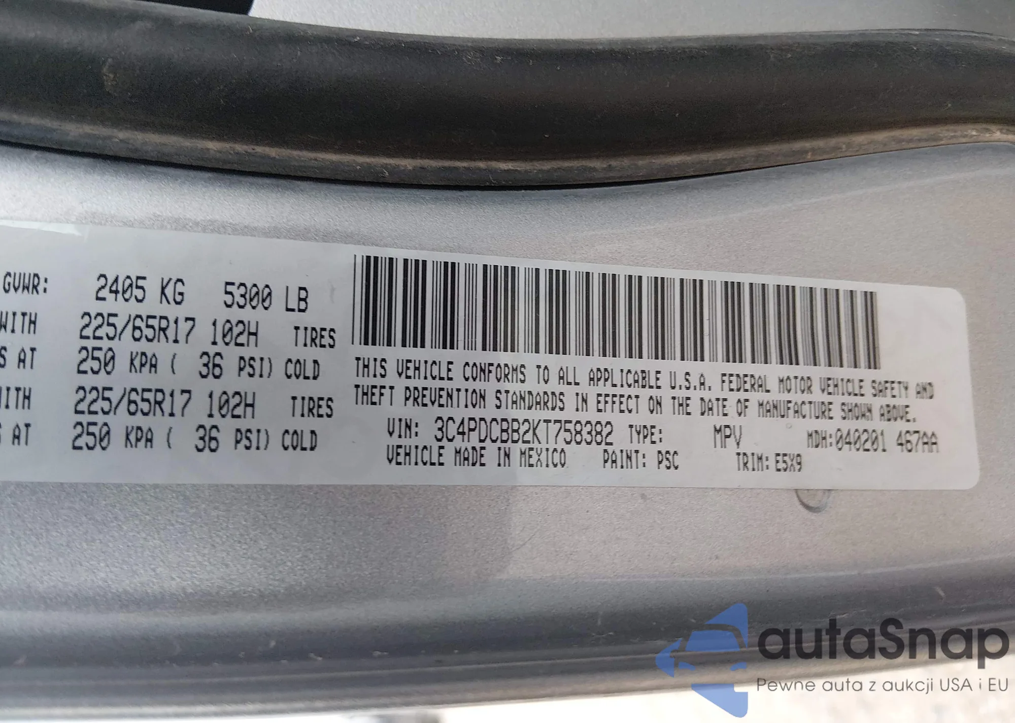 • VIN 3C4PDCBB2KT758382