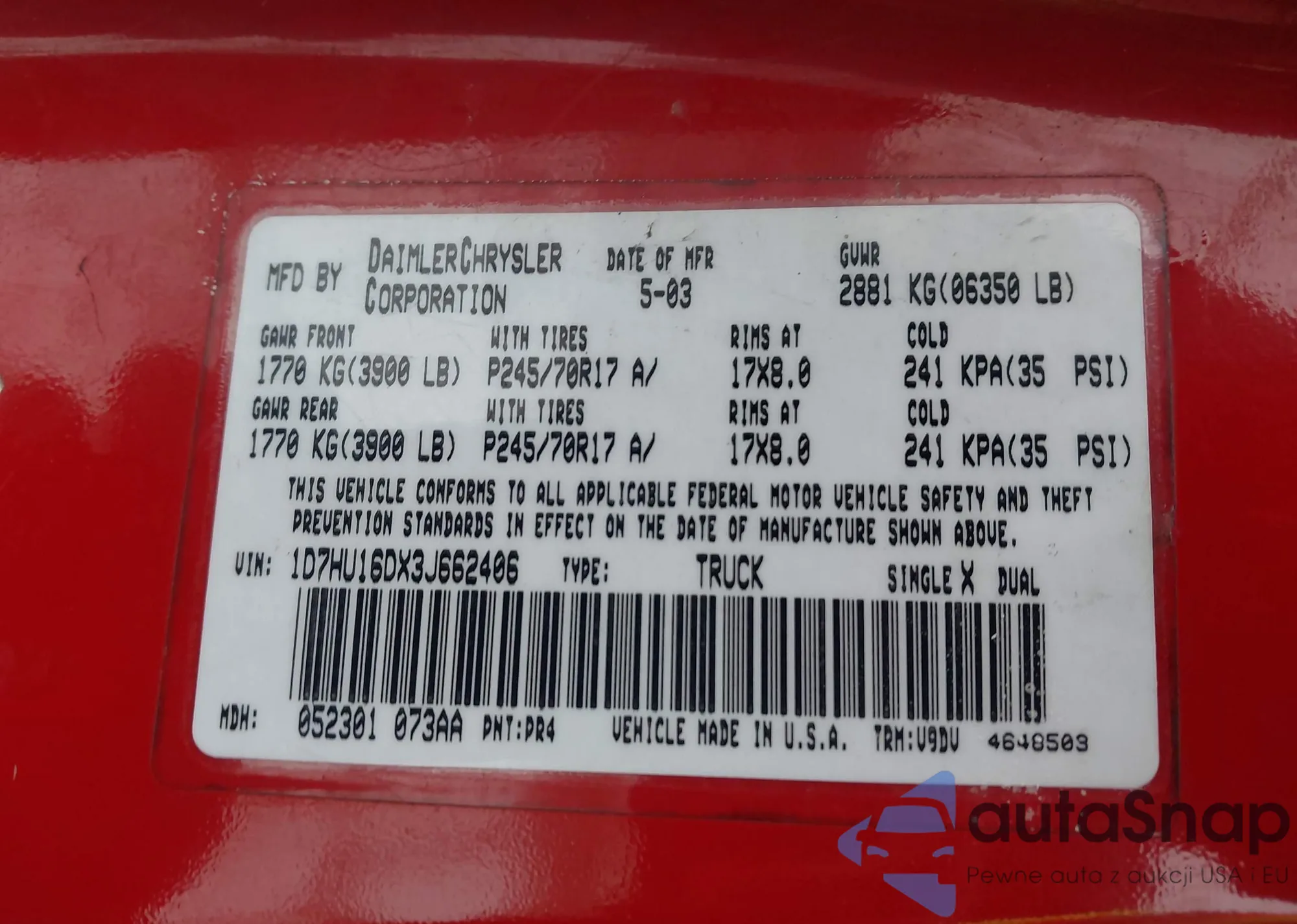 • VIN 1D7HU16DX3J662406