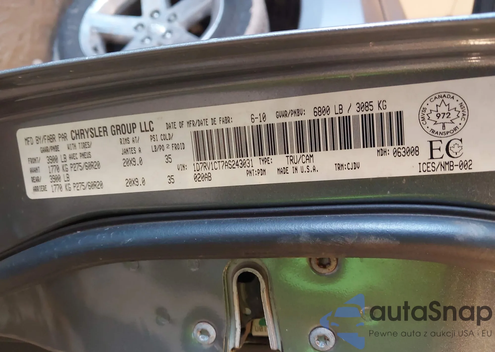 • VIN 1D7RV1CT7AS243031
