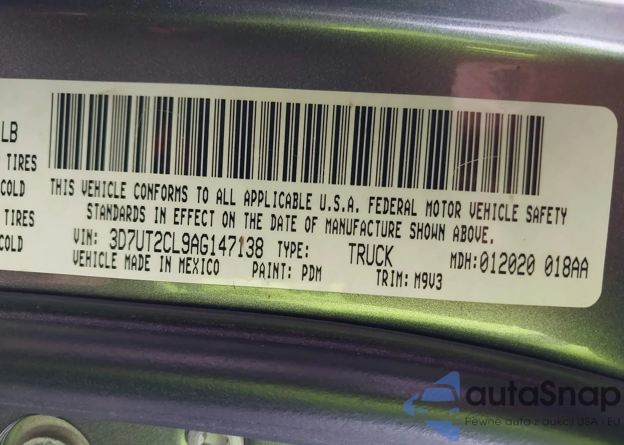 • VIN 3D7UT2CL9AG147138