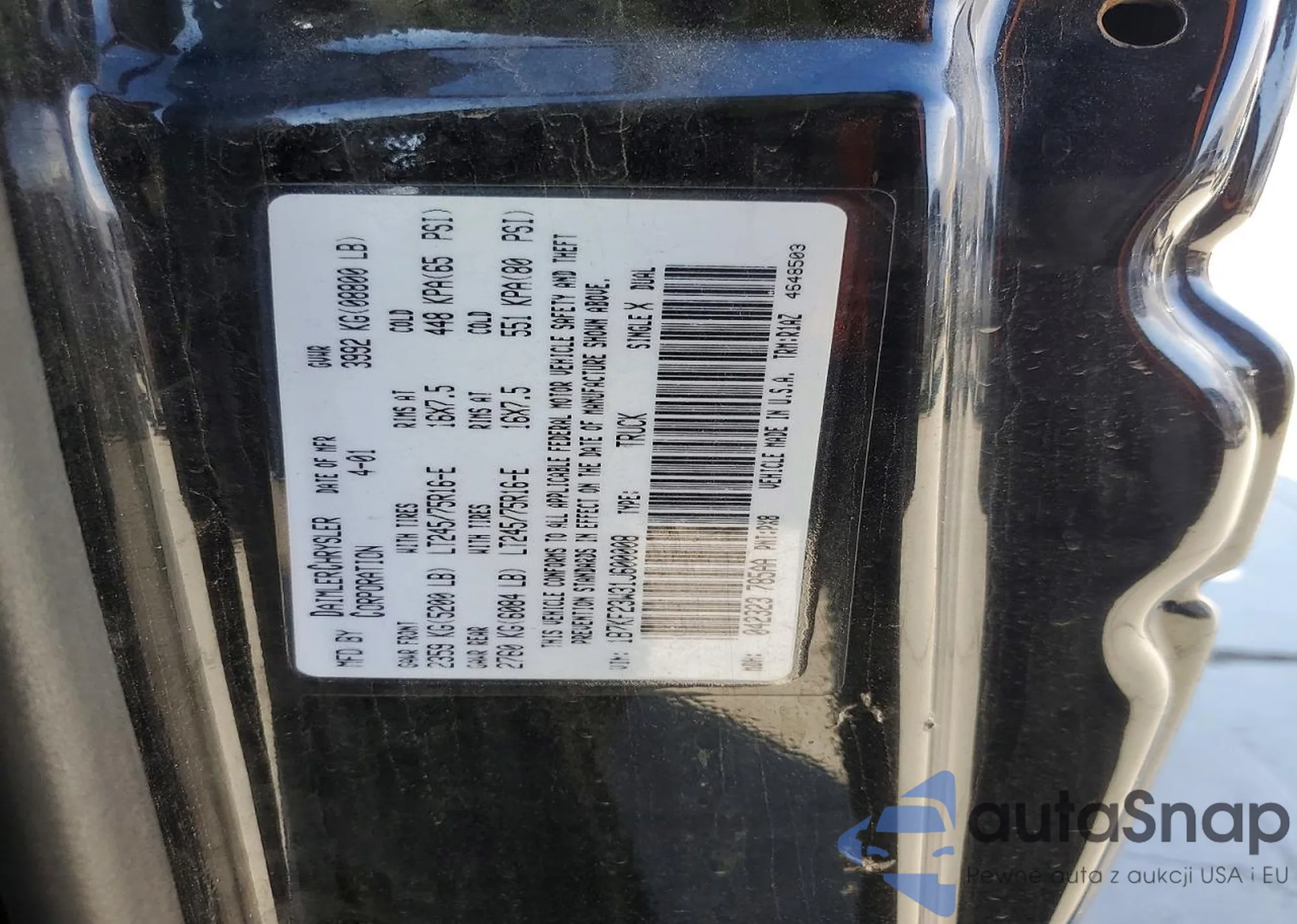LOT: 73925575 VIN: 1B7KF23W31J600008