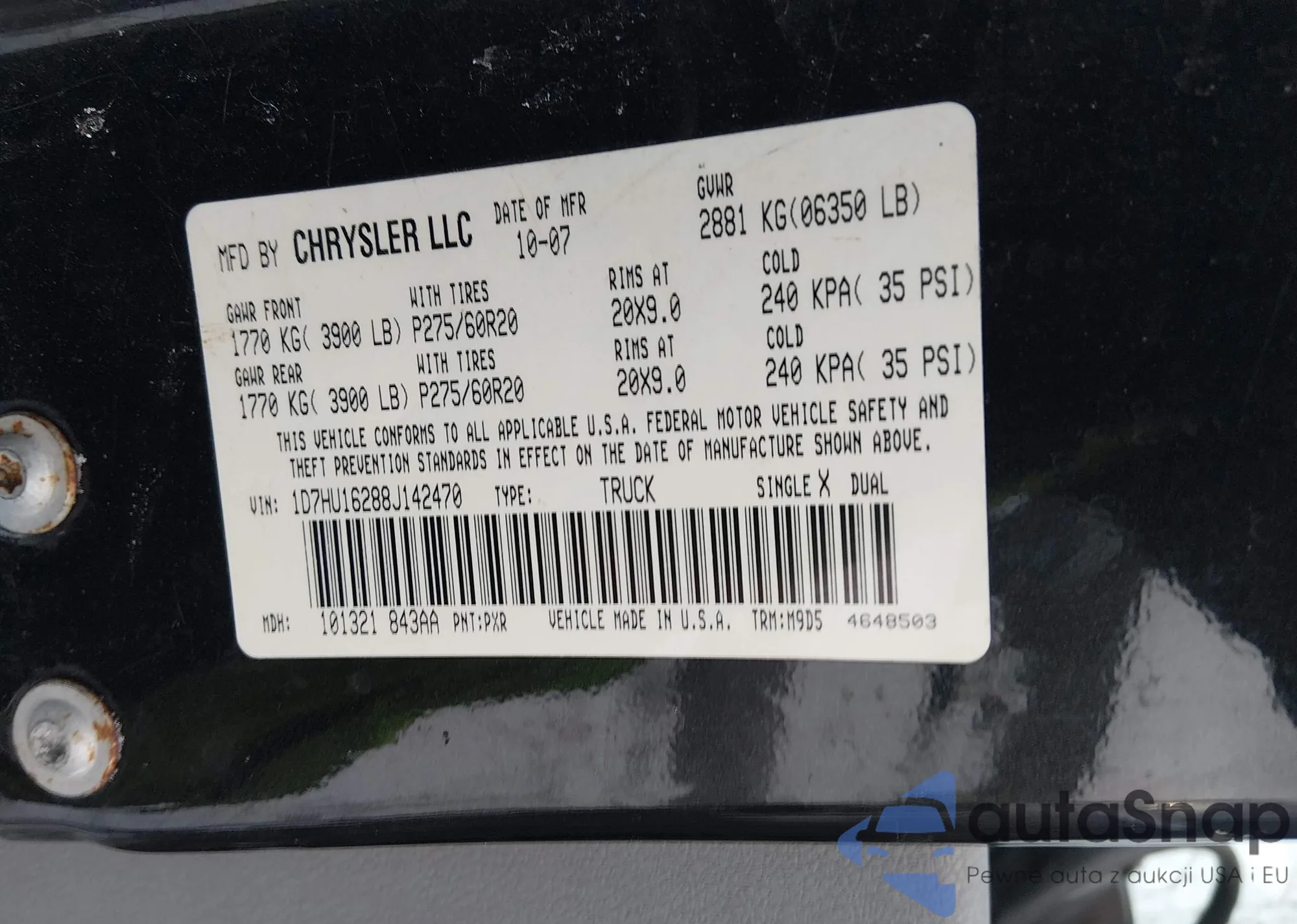 • VIN 3D7JB1EK5AG128025