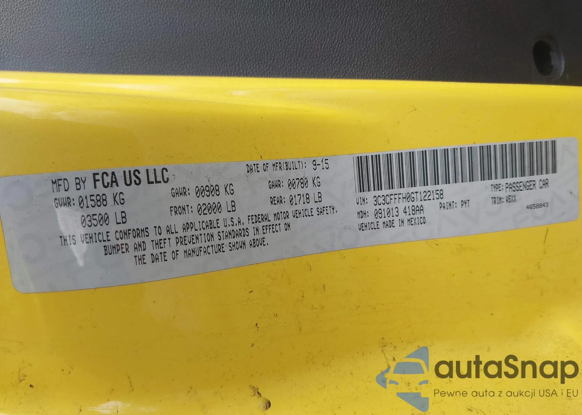 LOT: 44368533 VIN: 3C3CFFFH0GT122158