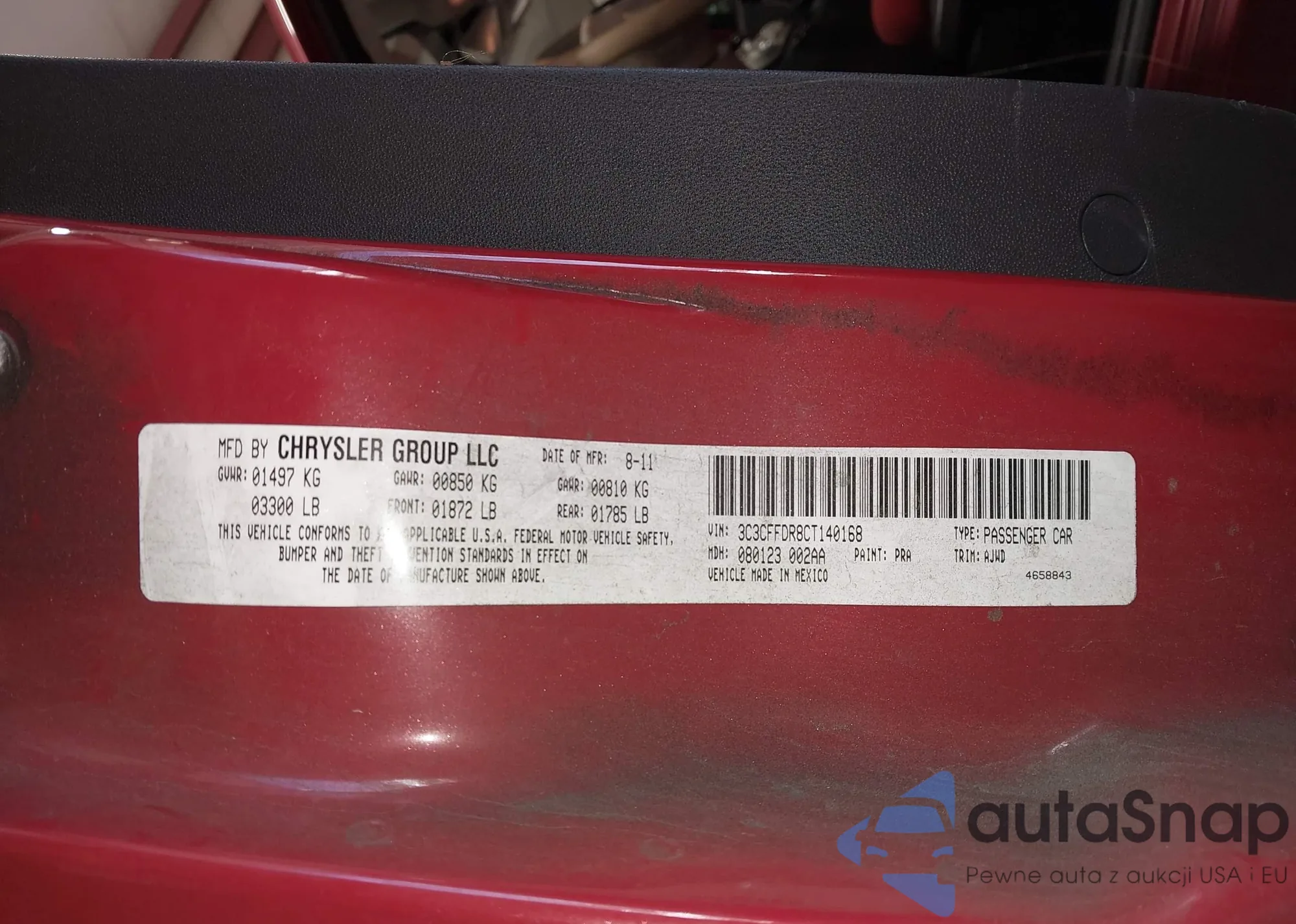 • VIN 3C3CFFDR8CT140168