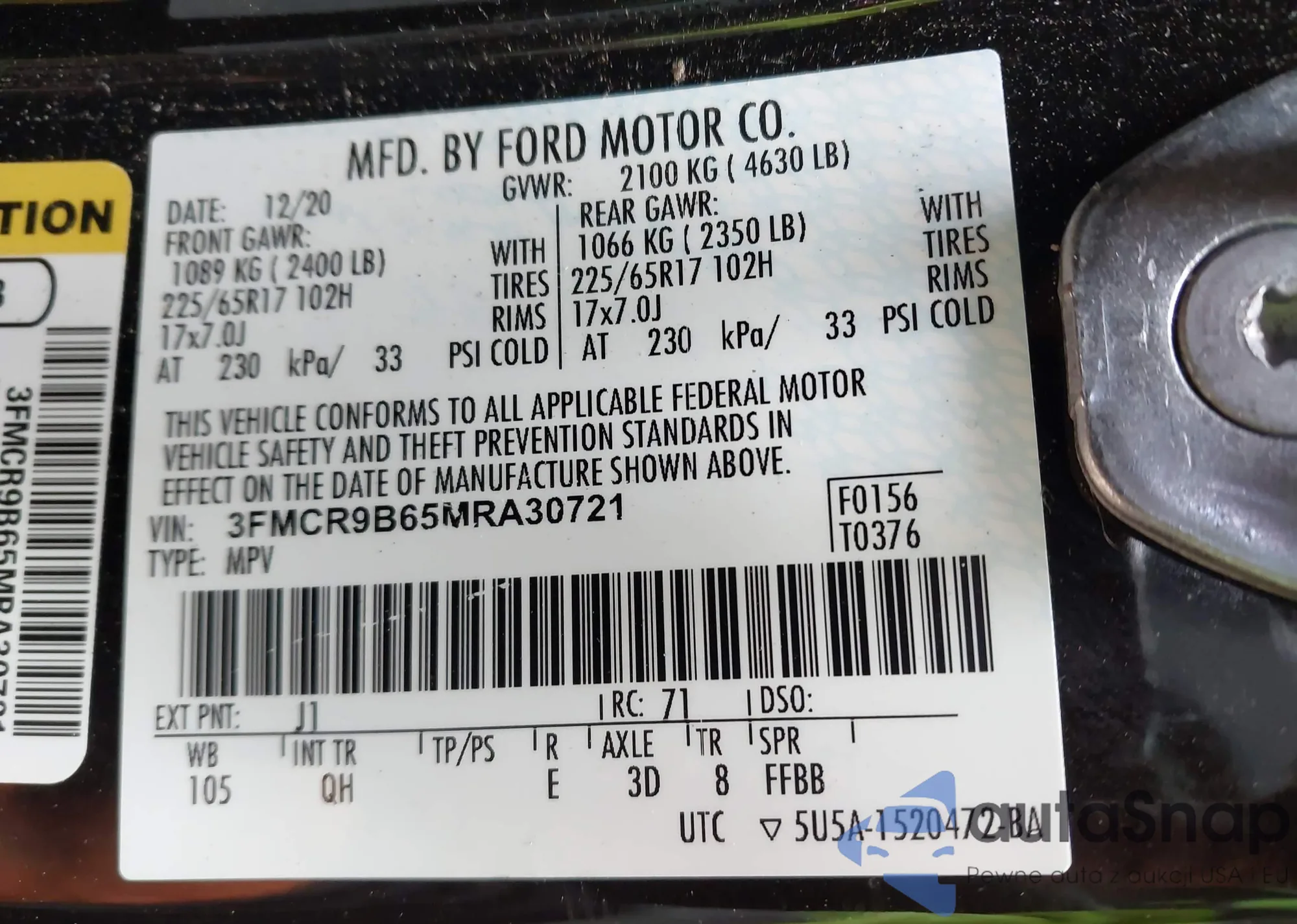 • VIN 3FMCR9B65MRA30721