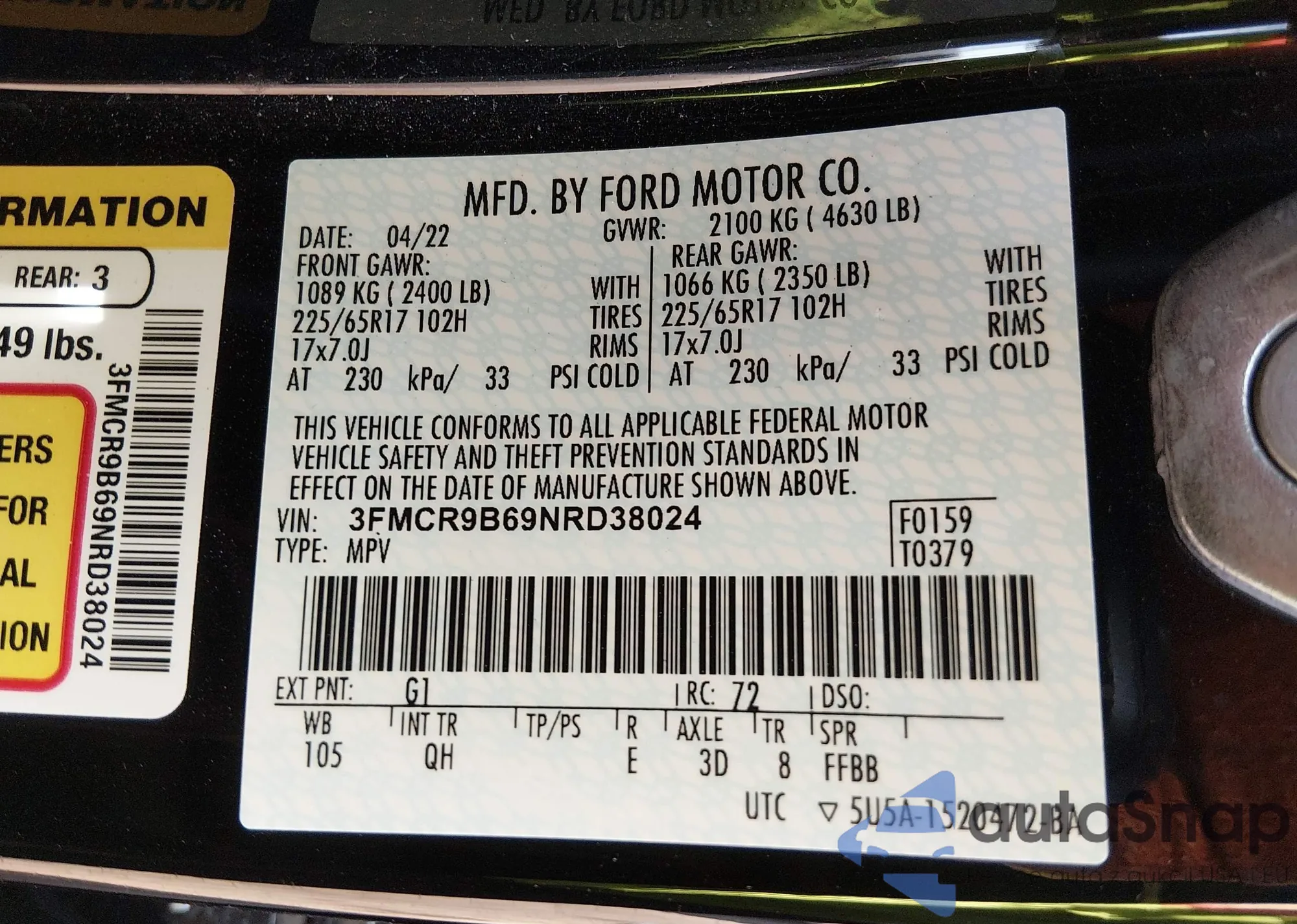 • VIN 3FMCR9A6XNRD44982