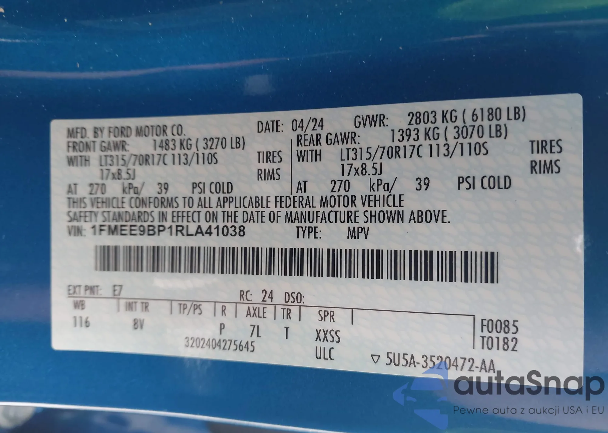 • VIN 1FMEE2BP5RLA09233