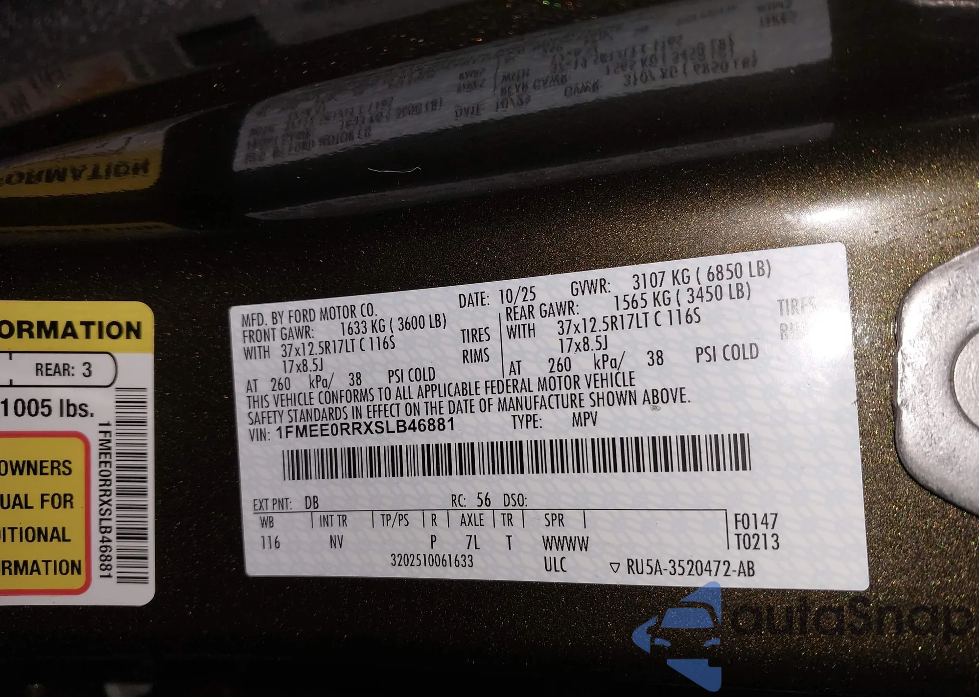 • VIN 1FMEE0RRXSLB46881