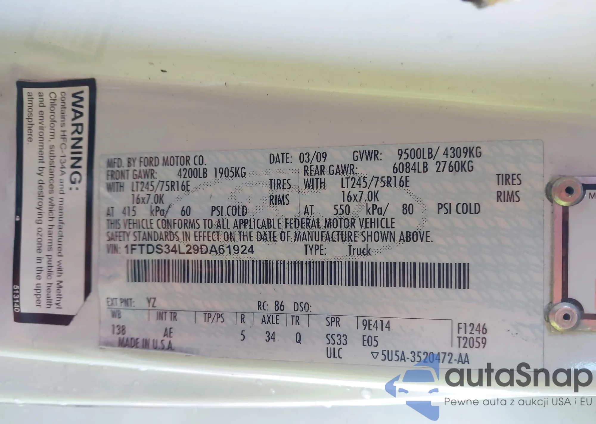 LOT: 41145432 VIN: 1FTDS34L29DA61924