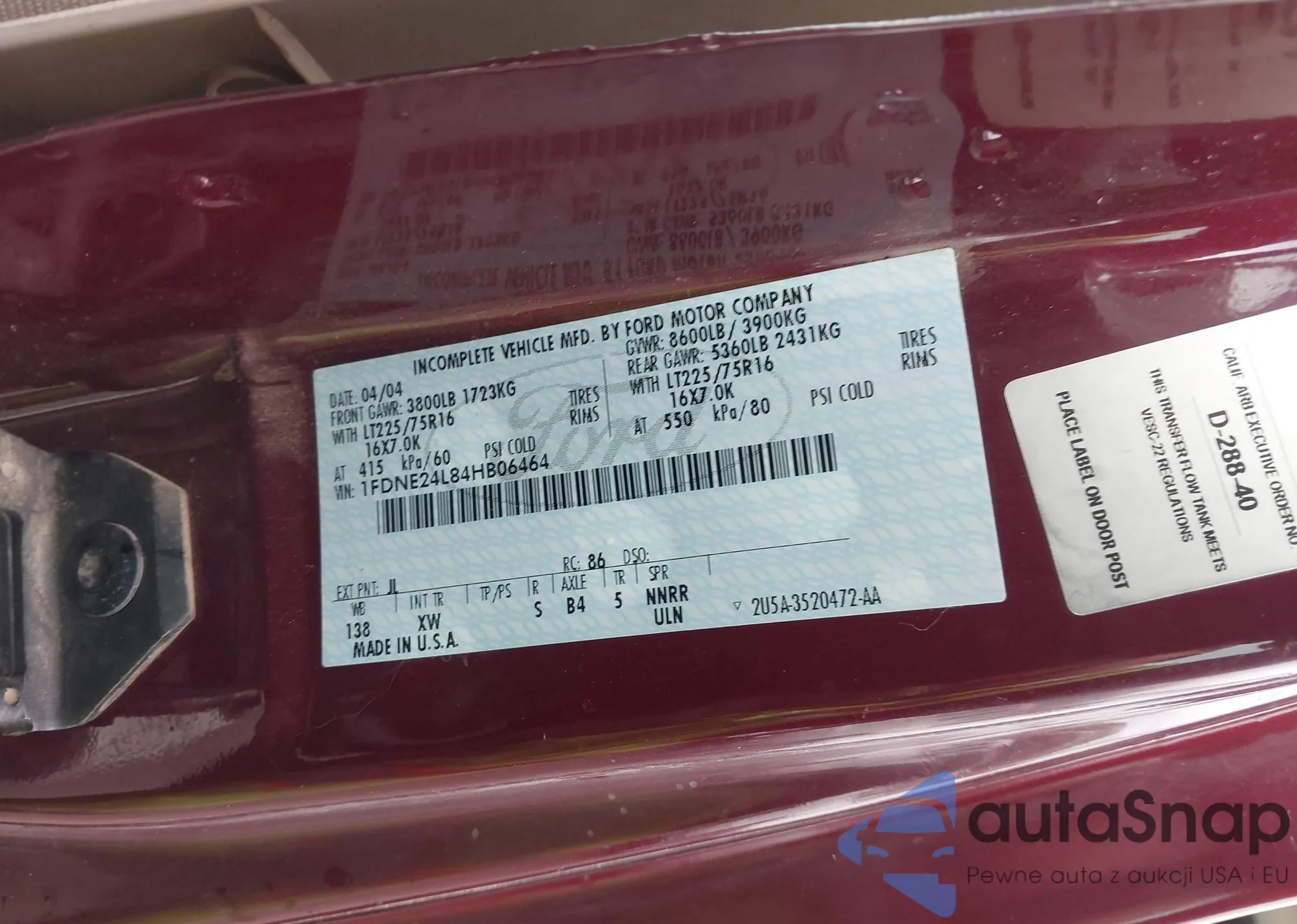 • VIN 1FDNE24L84HB06464