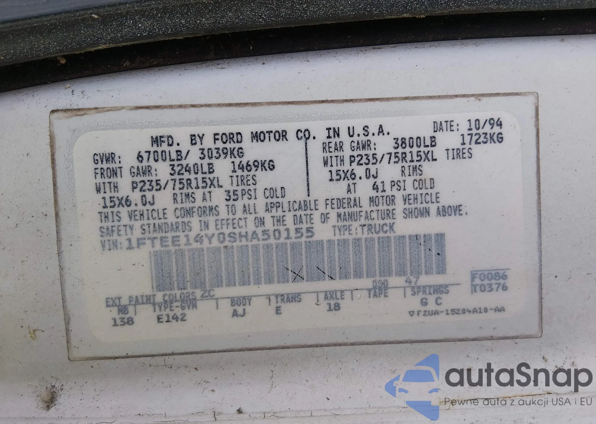 • VIN 1FTEE14Y0SHA50155