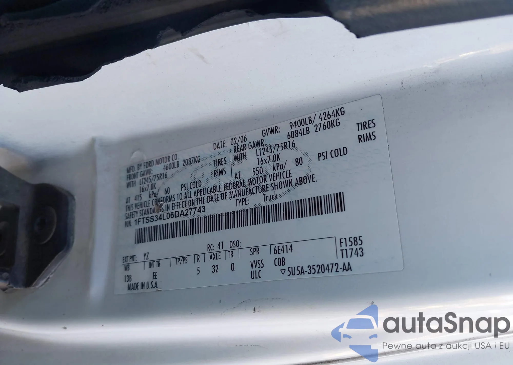 LOT: 44438449 VIN: 1FTSS34L06DA27743