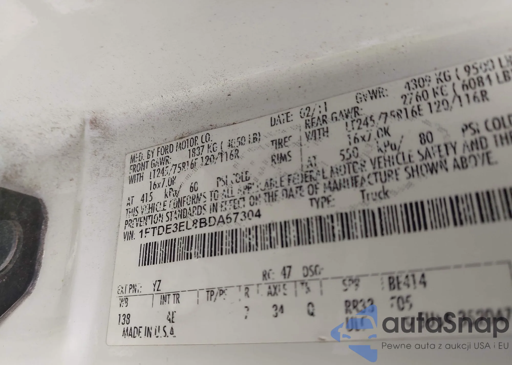 LOT: 44445328 VIN: 1FTDE3EL8BDA67304