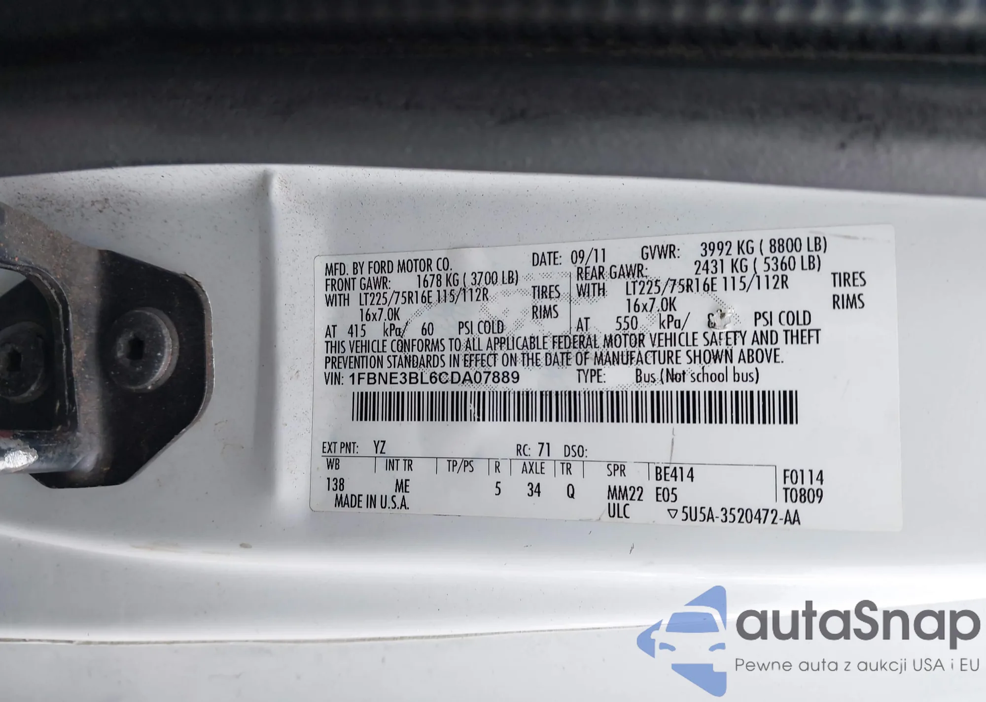 • VIN 1FBNE3BL6CDA07889