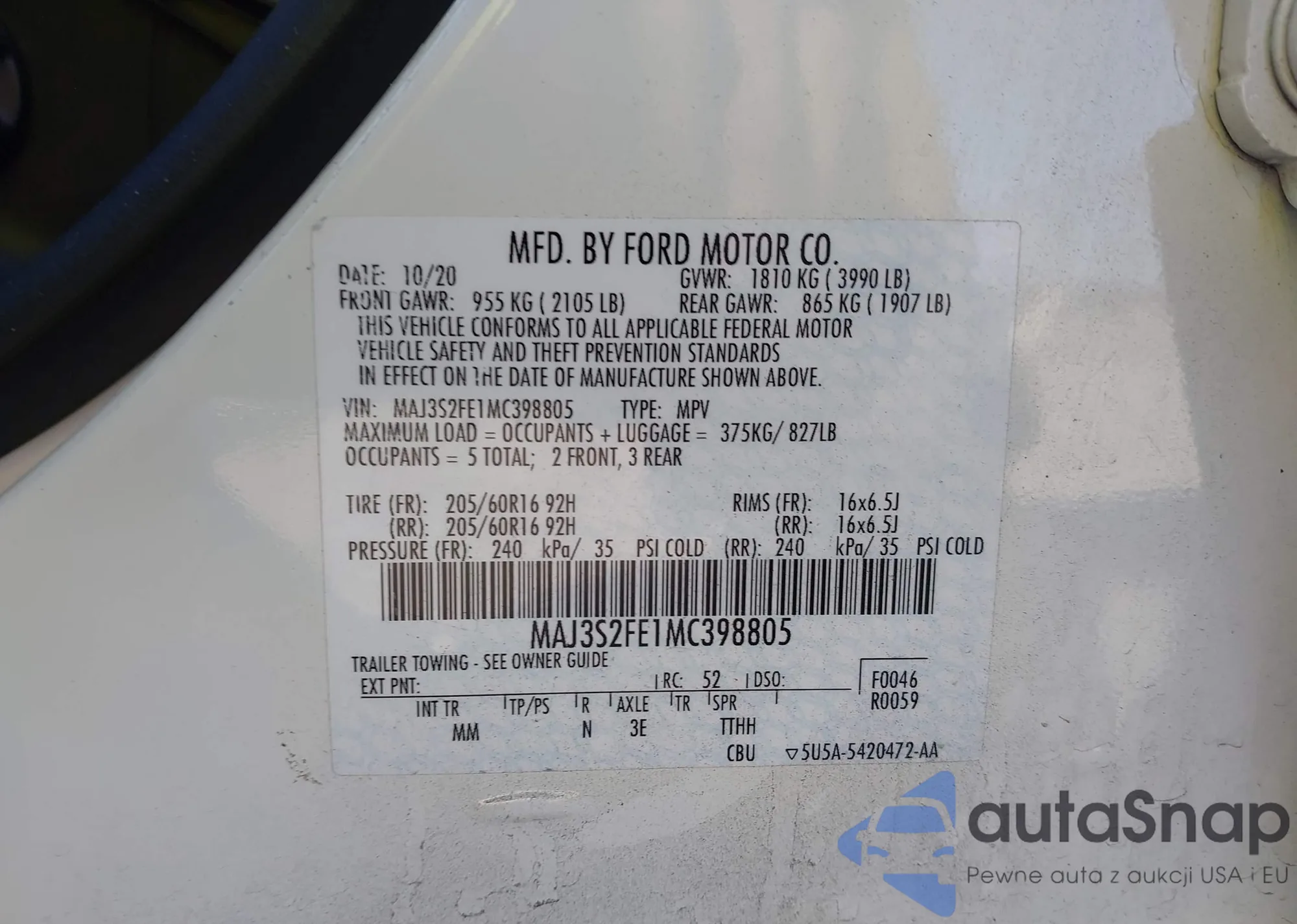 • VIN MAJ6S3JL6MC405062
