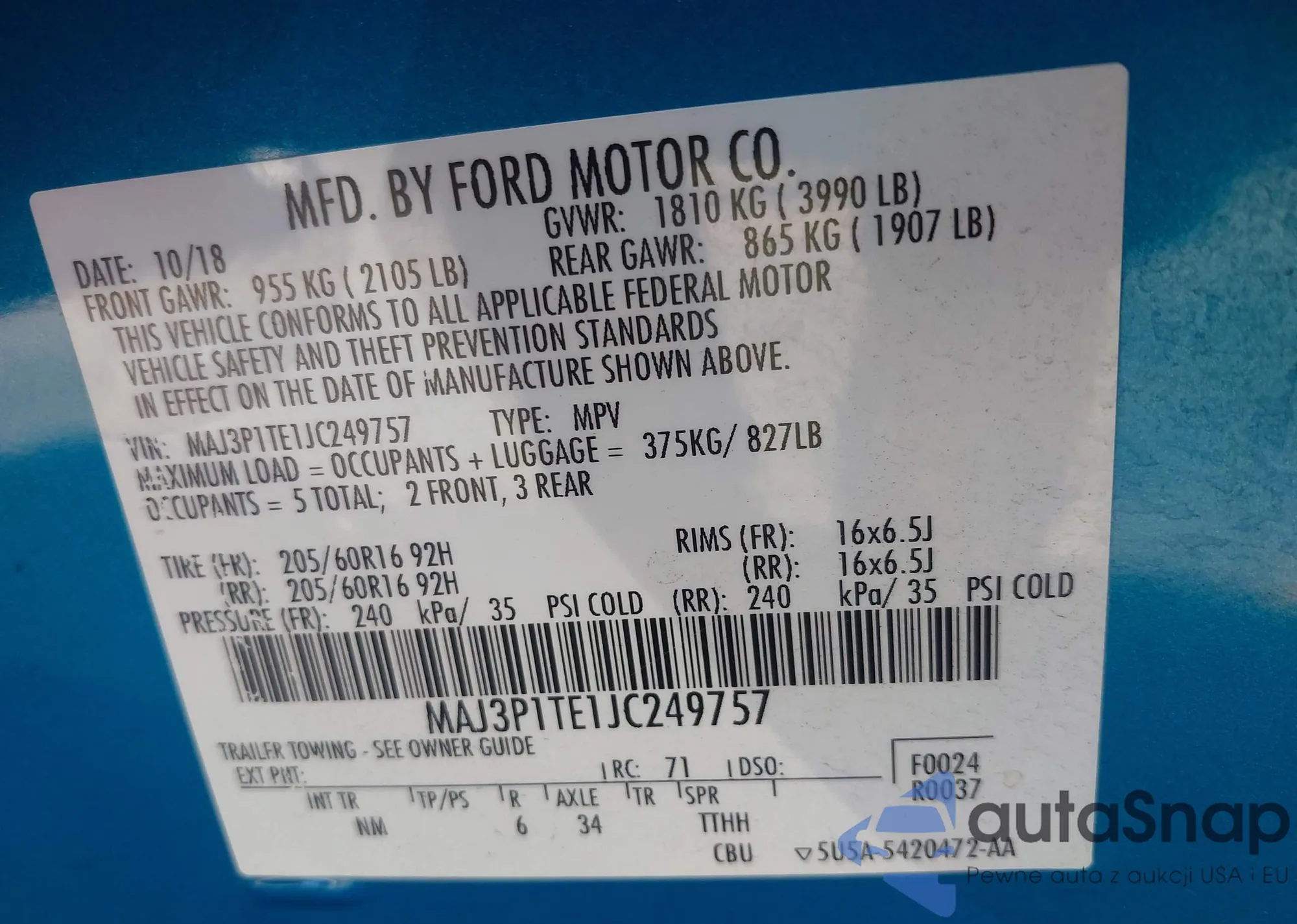 • VIN MAJ6P1UL1JC233603