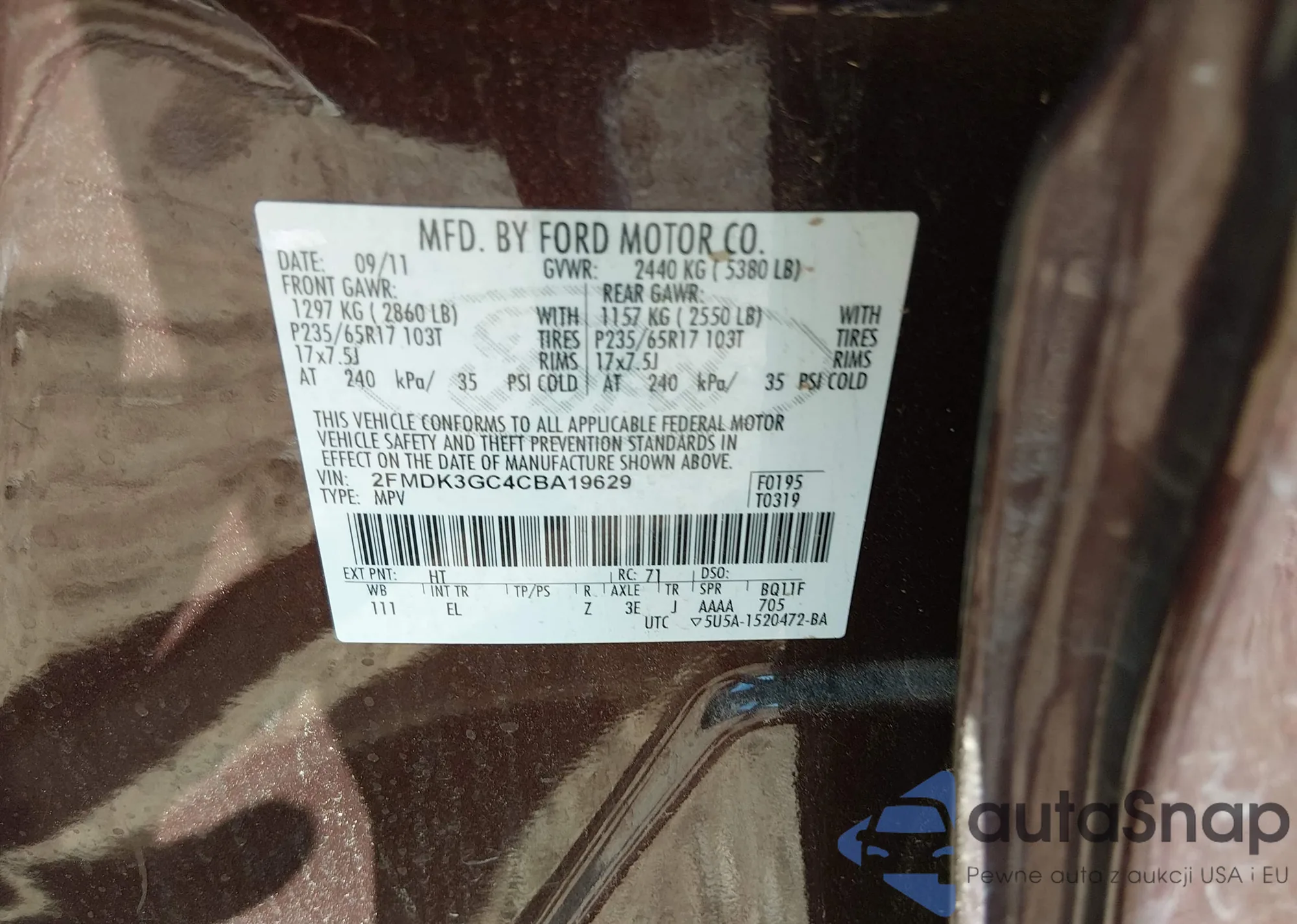 • VIN 2FMDK4KC7CBA60527