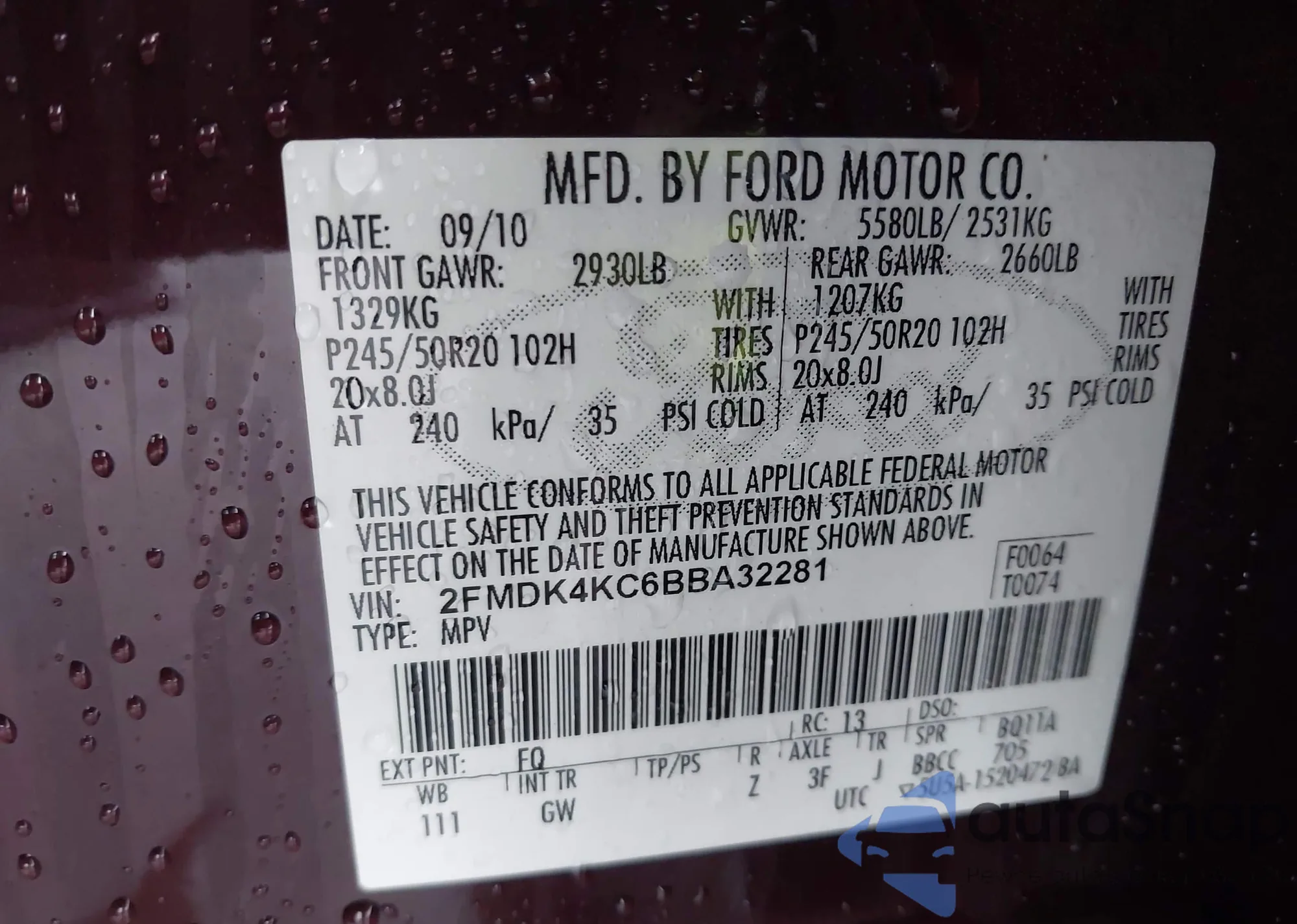 LOT: 43973003 VIN: 2FMDK4KC6BBA32281