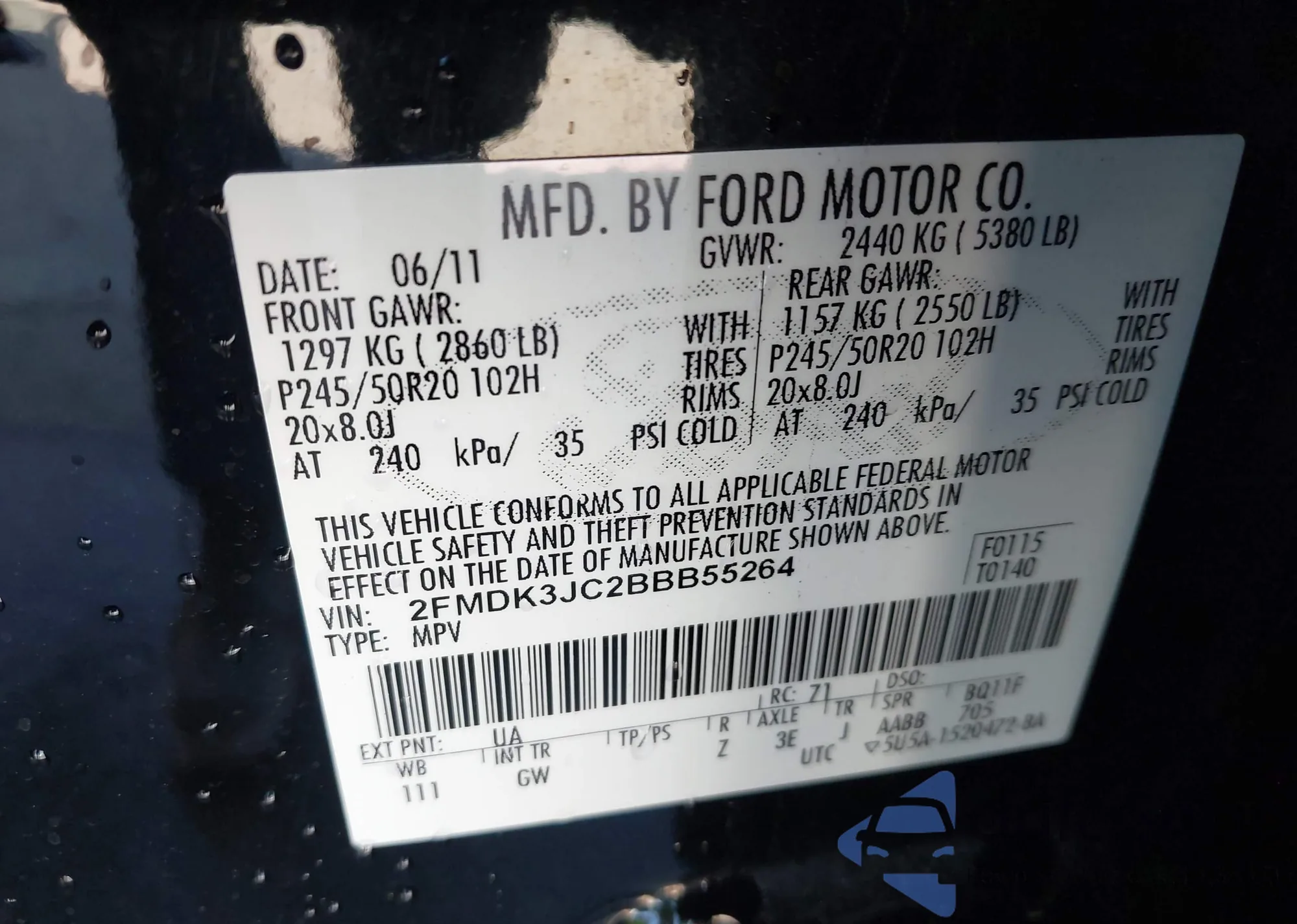 • VIN 2FMDK3JC2BBB55264