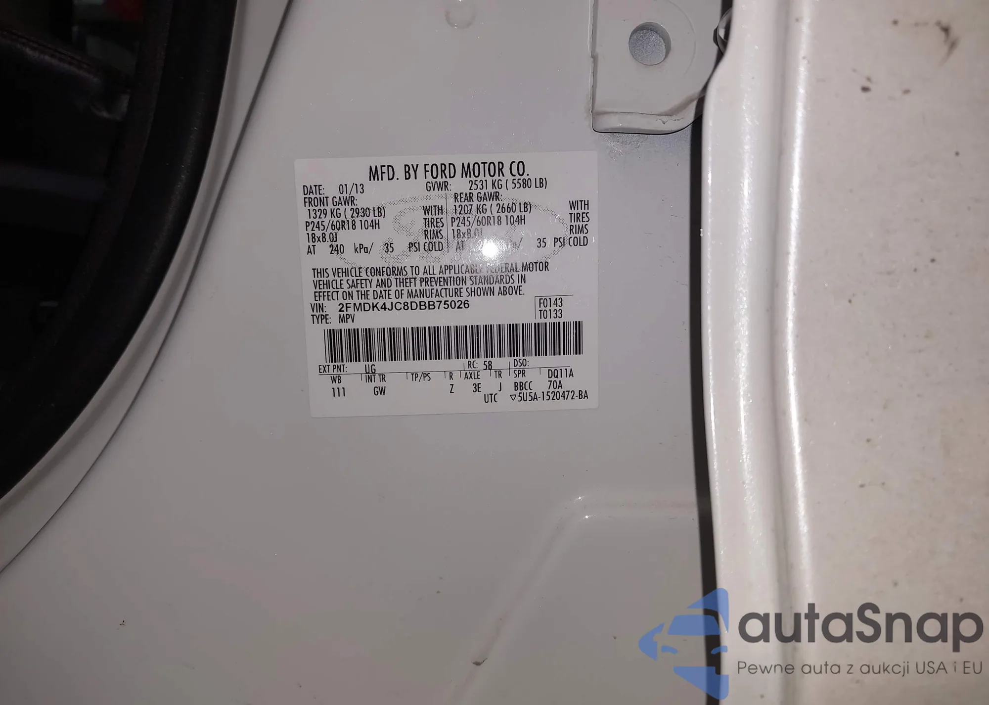LOT: 44306698 VIN: 2FMDK4JC8DBB75026