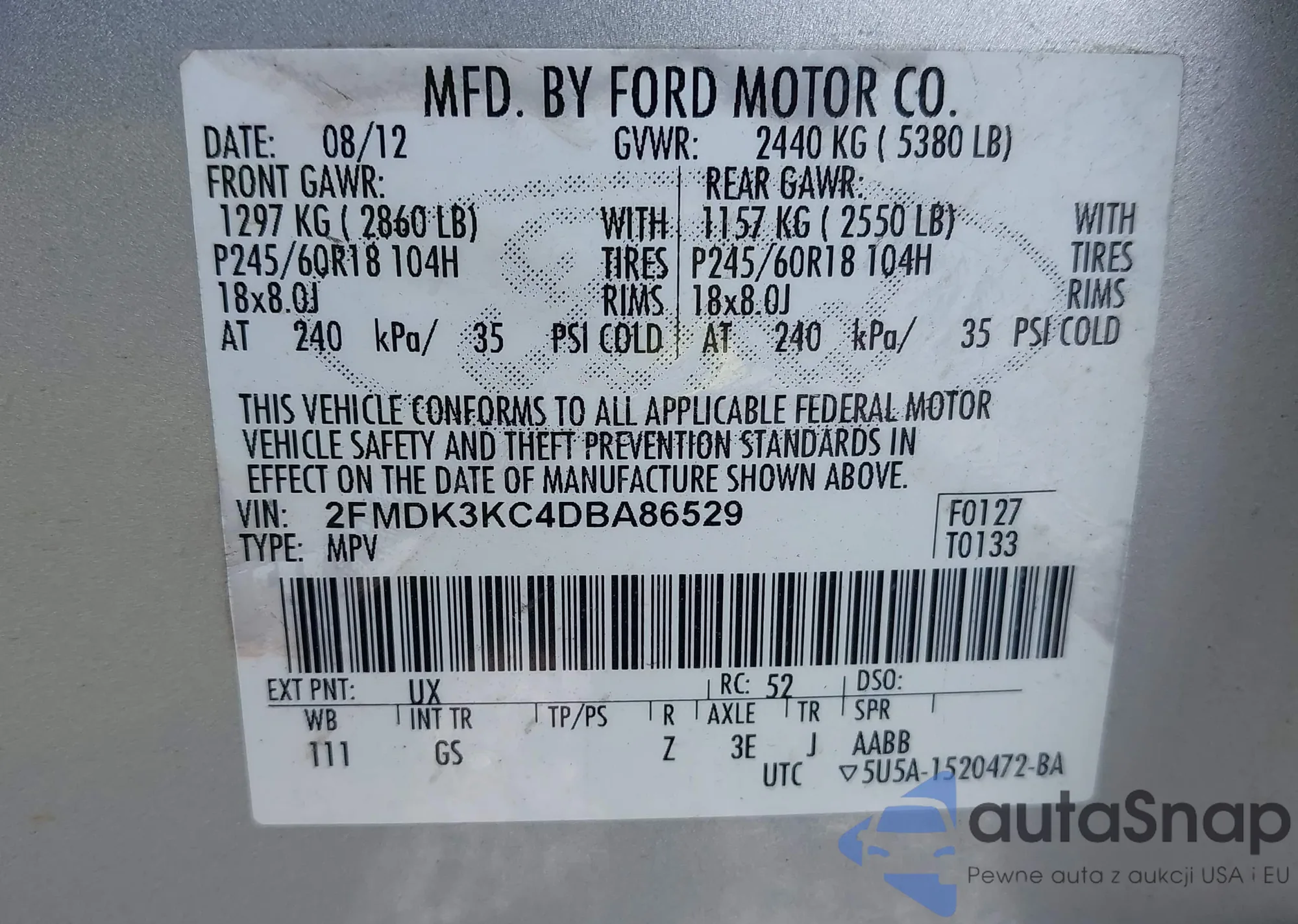• VIN 2FMDK3KC4DBA86529