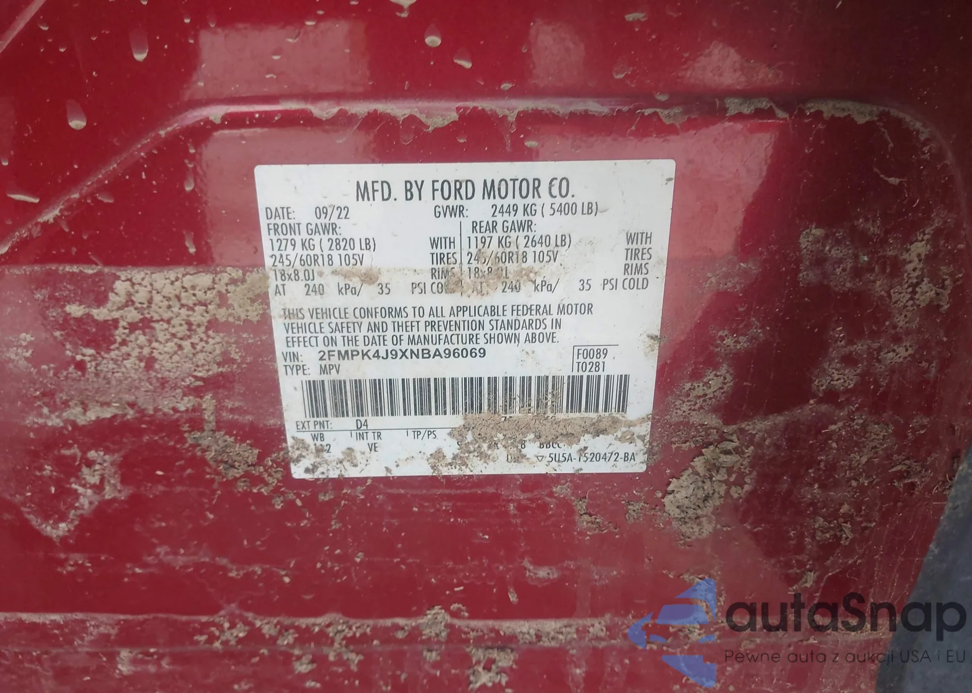 • VIN 2FMPK4J9XNBA96069