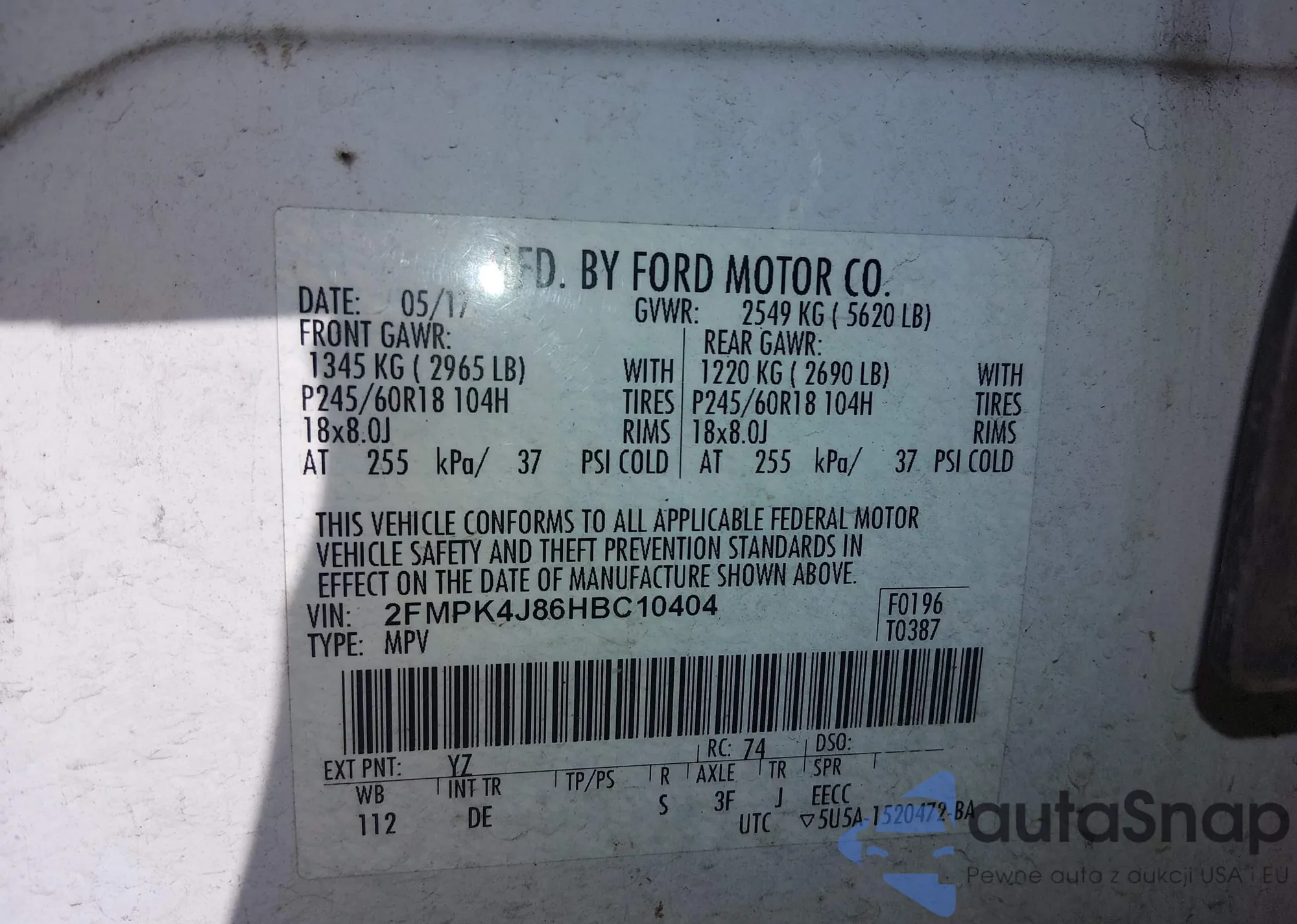 • VIN 2FMPK4J86HBC10404