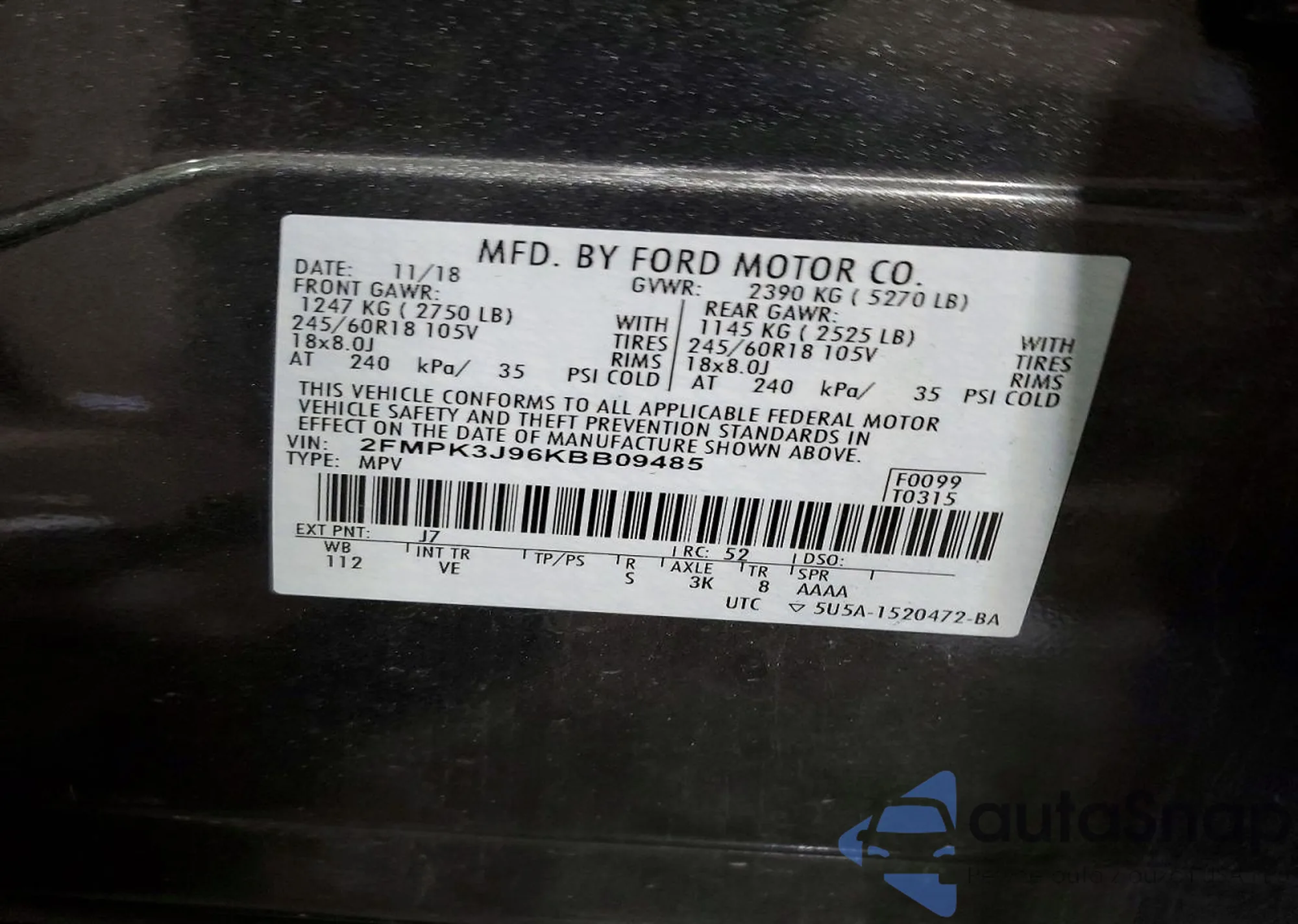 • VIN 2FMPK4K81JBB38130