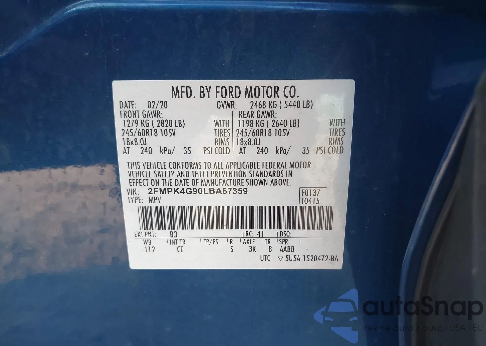 • VIN 2FMPK4G90LBA67359