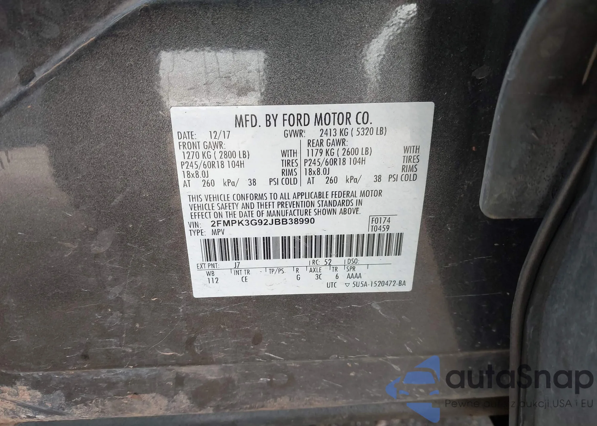 • VIN 2FMPK3G92JBB38990
