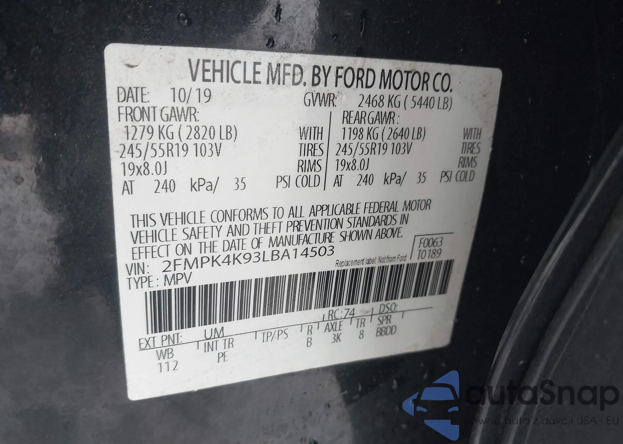 • VIN 2FMPK4K93LBA14503