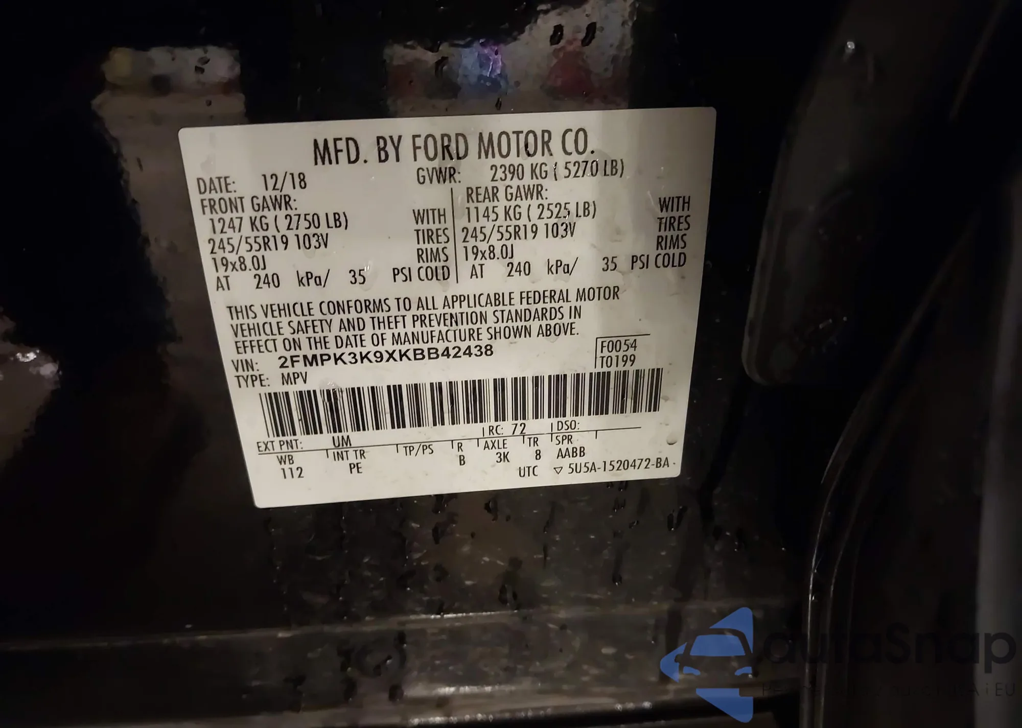 • VIN 2FMPK3K9XKBB42438